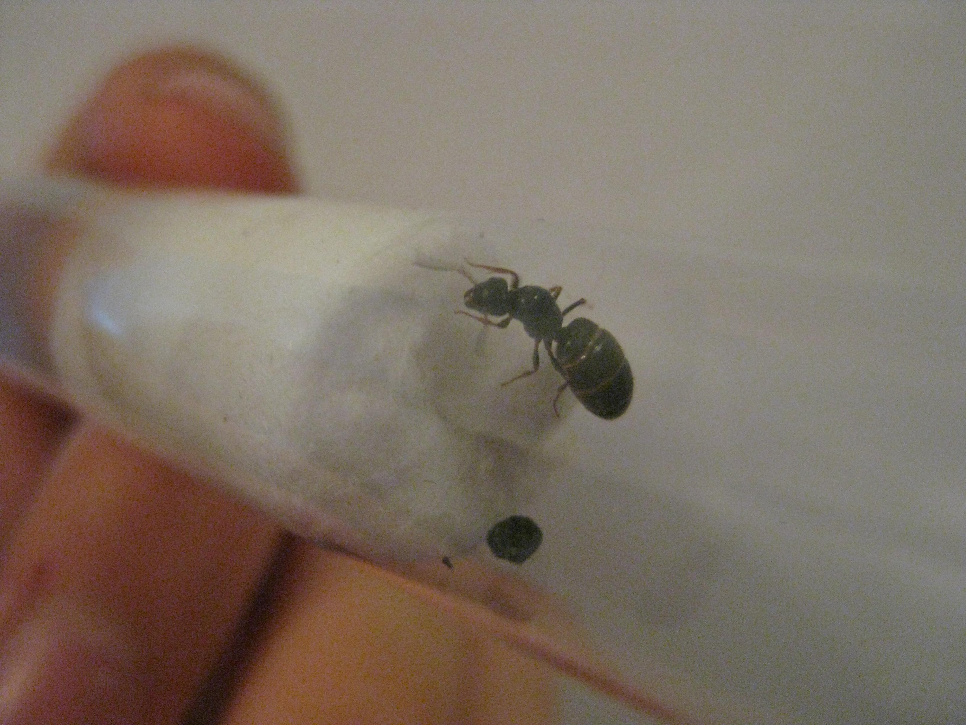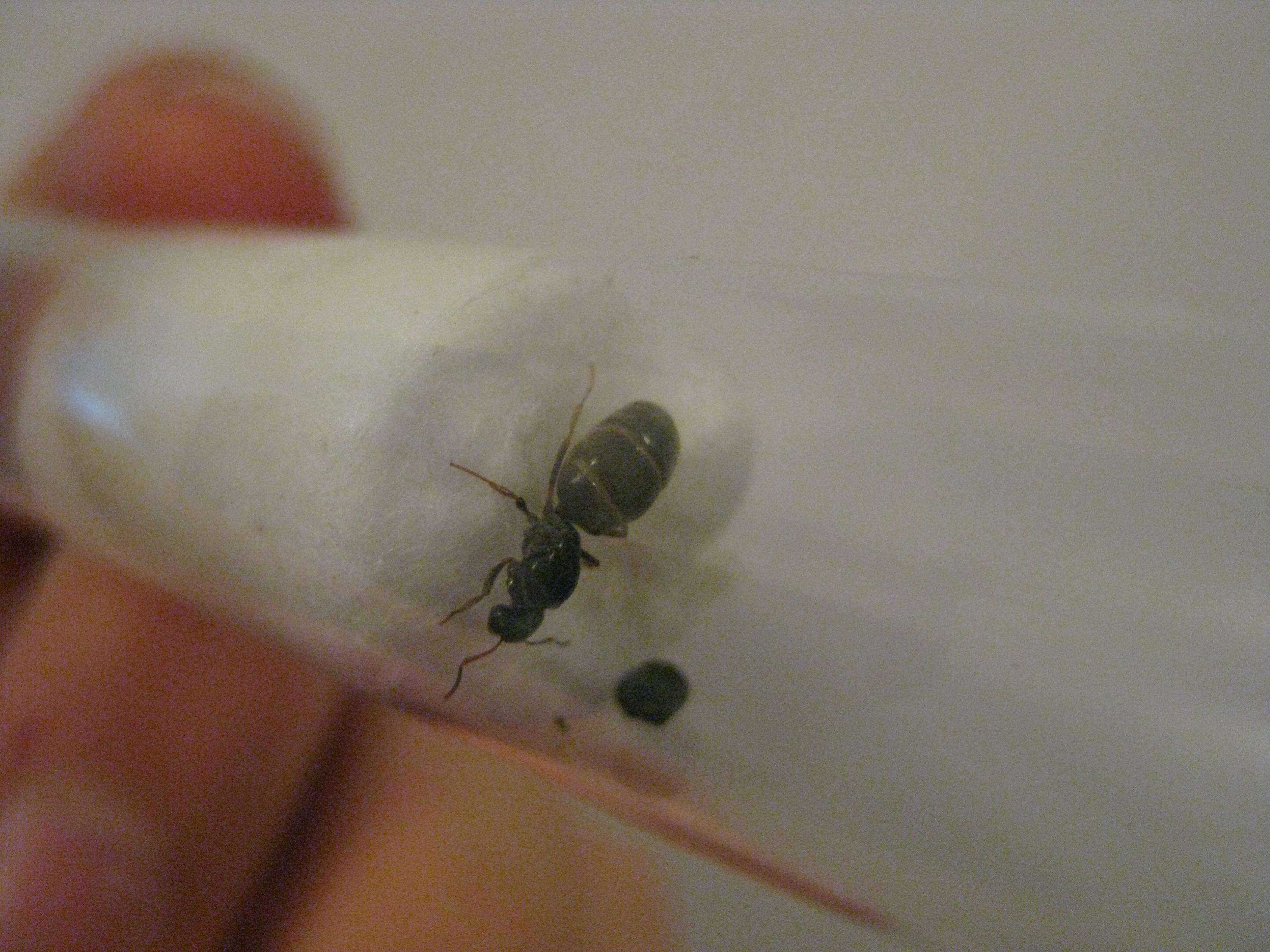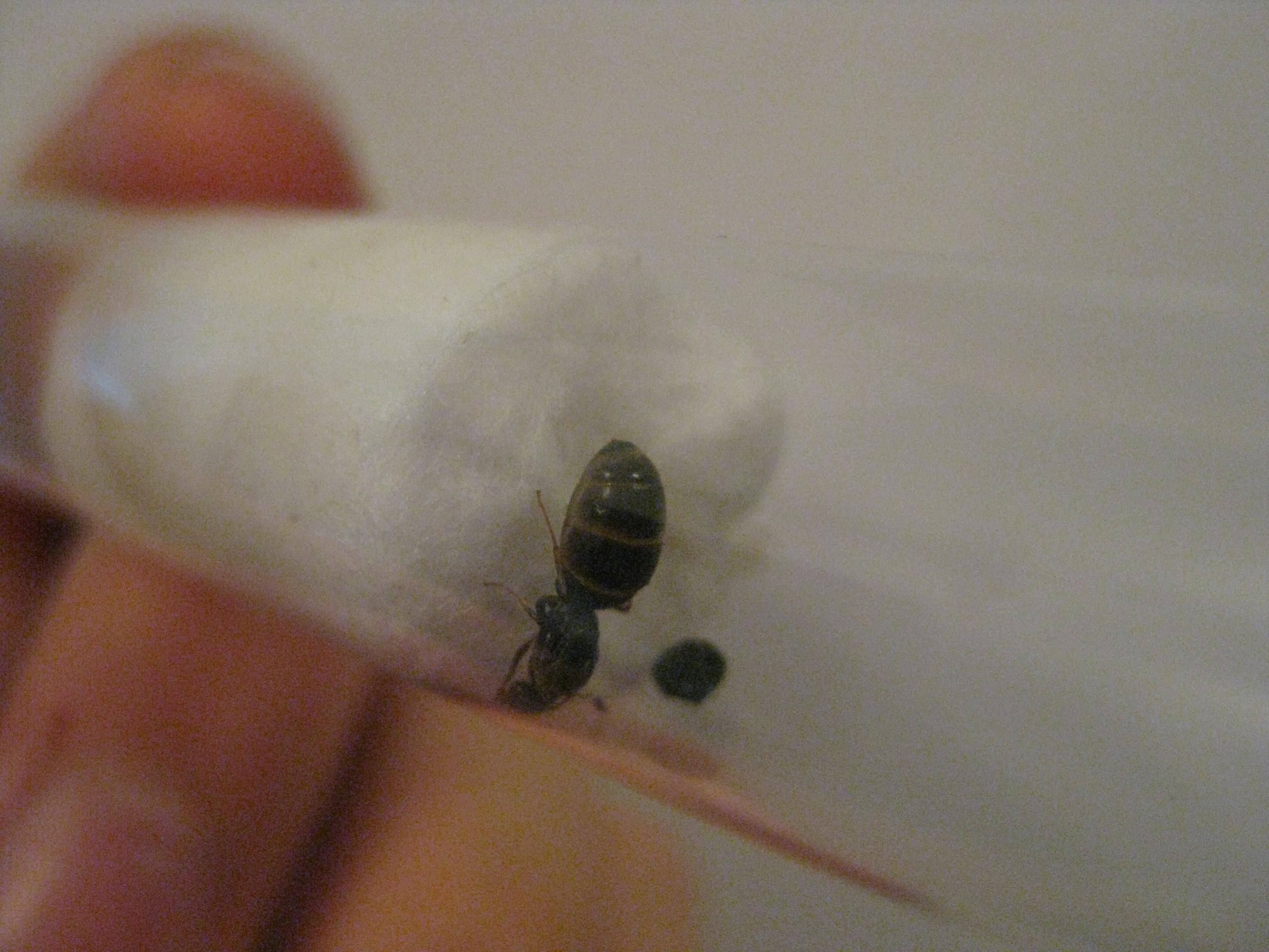 Es ist jedenfalls eine claustral grĂŒndende Lasius sp. Gyne und ich vermute doch, dass es sich um Lasius niger handeln kann. Nach einer Lasius flavus-Gyne sieht mir das Tier nicht aus.