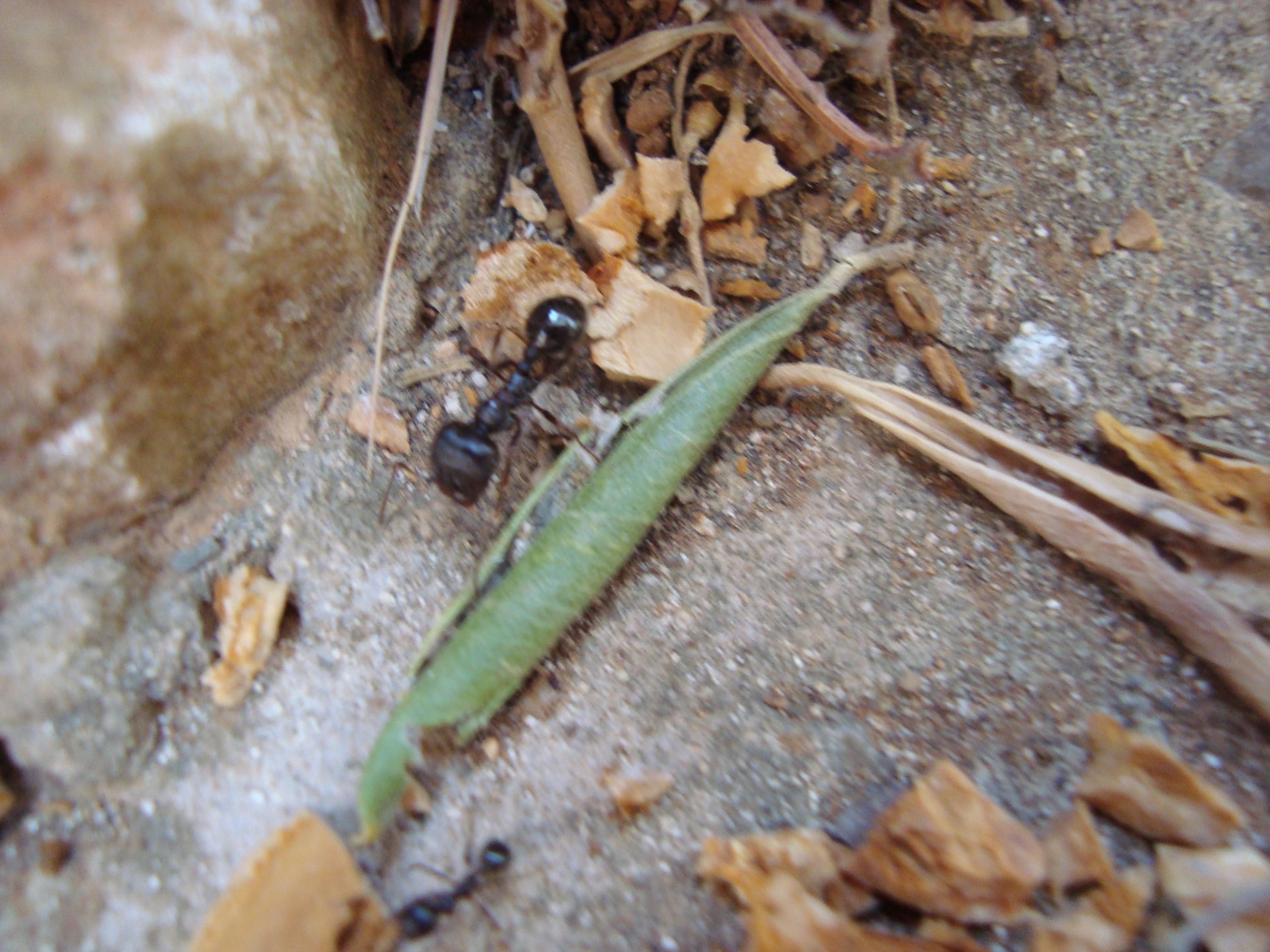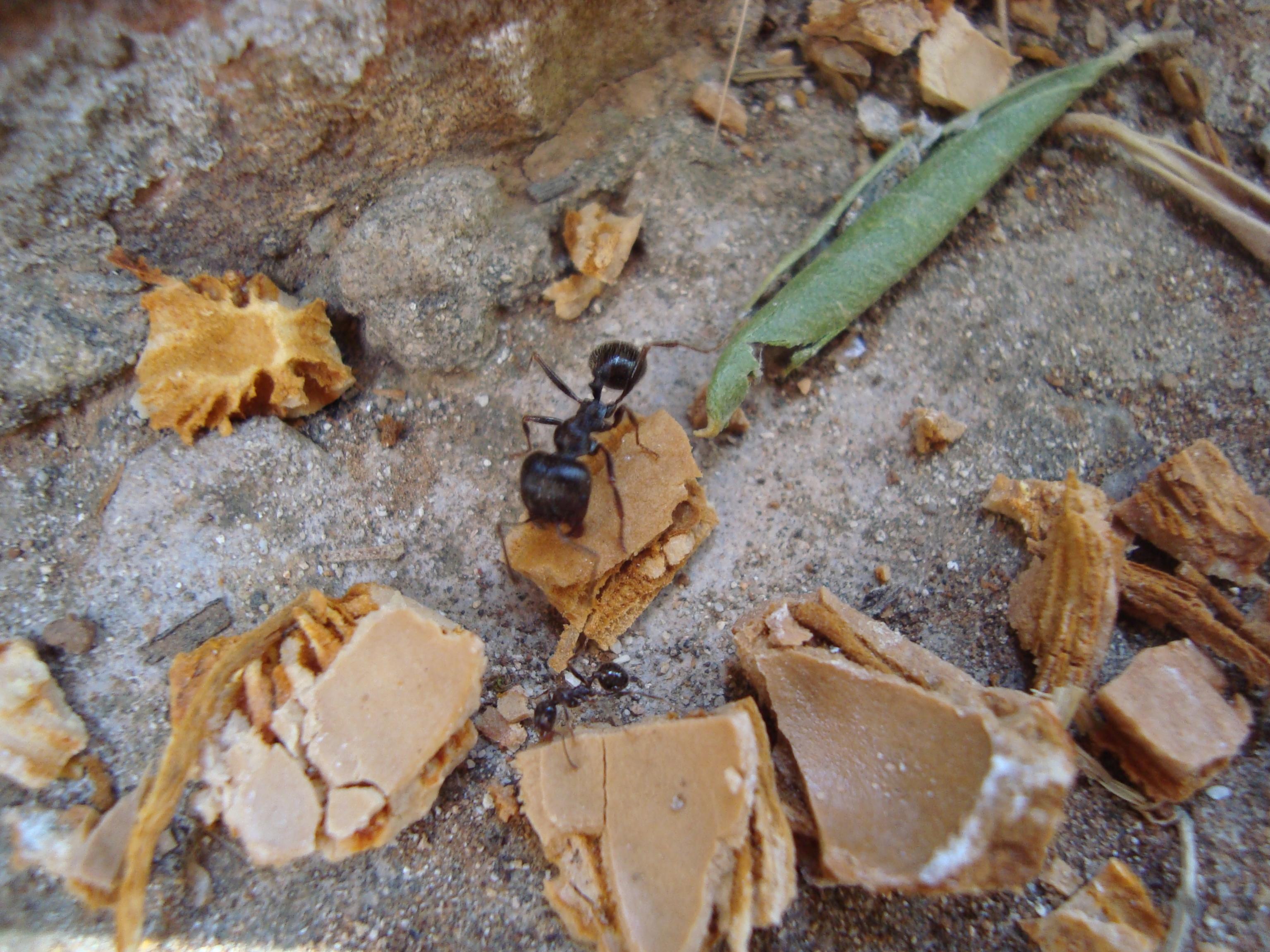Nach Kurzer Zeit kam ein Haufen Ameisen und transportierten die Schalen zu ihrem Nest. Auch Brot haben sie angenommen. Sie waren sehr friedlich und wenn ein Feind in der nÀhe war haben sie sich verkrochen statt zu kÀmpfen. Kastenbildung war sehr stark.