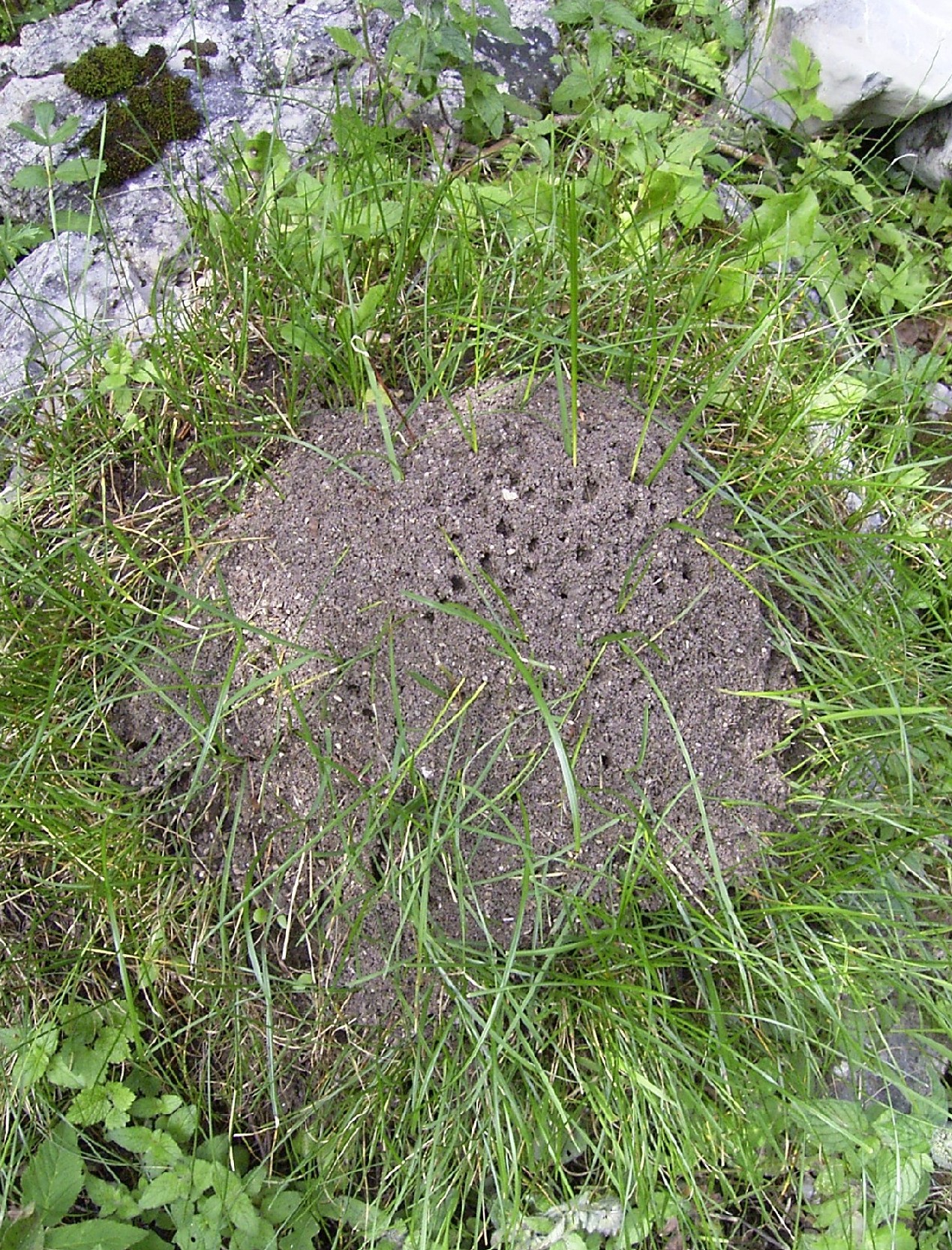 6. Auffallend sind die zahlreichen Nestöffnungen an der OberflĂ€che, die zuerst gegen L. flavus sprechen wĂŒrden, auch bei L. niger sind in solchen FĂ€llen die Ăffnungen eher seitlich zu erwarten. Die Fundzeit ist aber August und da wĂ€re fĂŒr L. niger in dieser Höhenlage die SchwĂ€rmzeit anzunehmen, fĂŒr L. flavus eher spĂ€ter. Zur SchwĂ€rmzeit legen die Arbeiterinnen fĂŒr die groĂen weiblichen Geschlechtstiere gröĂere Nestöffnungen an.