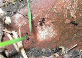 Beim untersuchen des Nesteingangs wurde ich von ein paar Arbeiterinnen angegriffen. Sie zwickten mich in den Finger und dabei konnte ich erkennen wie sie reichlich von einem Sekret ĂŒber die Mundwerkzeuge absonderte. Das habe ich genau beobachtet und es kahm mir schon recht ungewöhnlich vor.