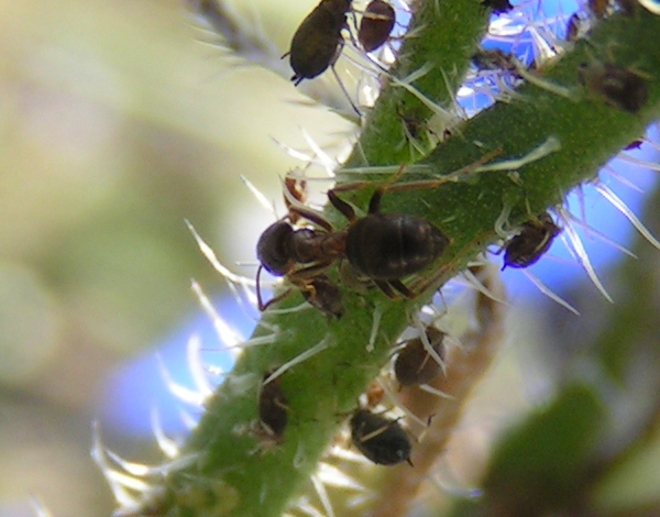 Die Ameisen halten sich auf dieser Pflanze sehr erfolgreich eine Blattlaus Zucht, mittlerweile ist die Pflanze gerade zu ĂŒbersĂ€t mit BlattlĂ€usen.