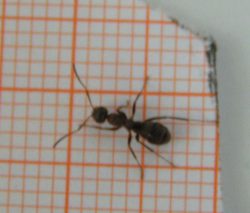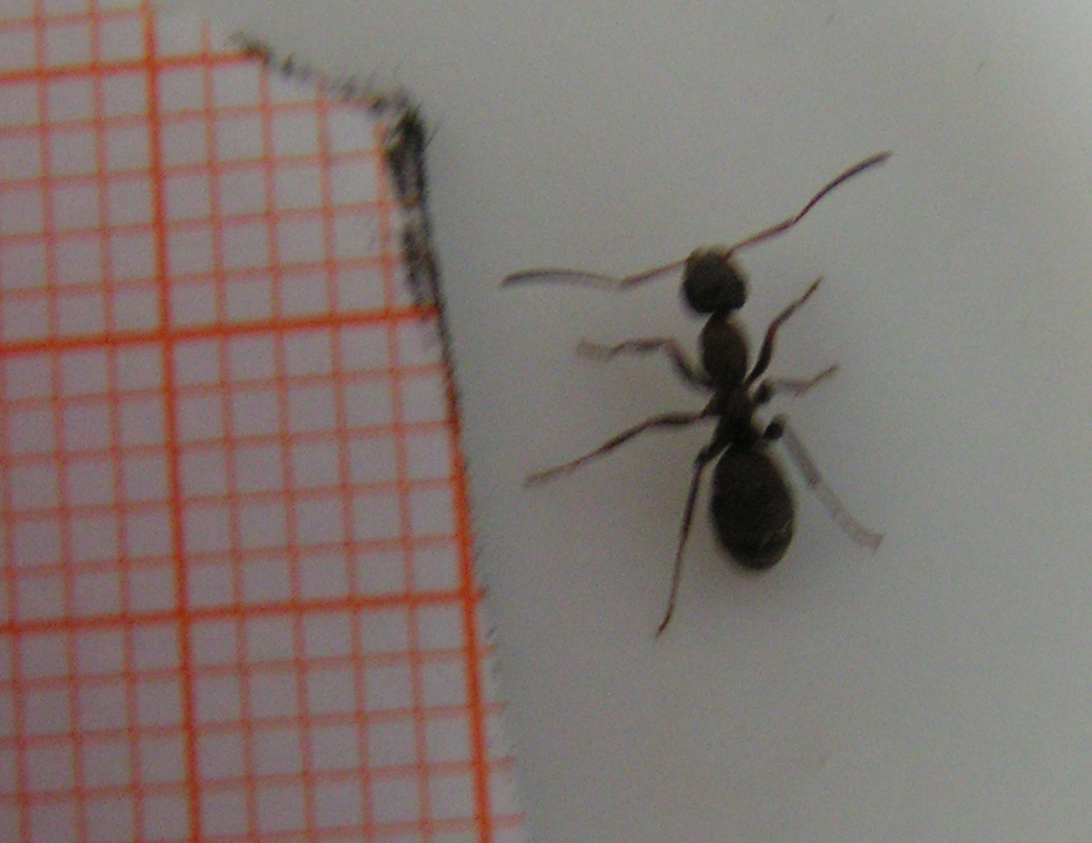 Arbeiterinnen : zw. ca.3-7mm (geschĂ€tzt, Ameise ĂŒber KĂ€stchen-Papier laufen sehen.)