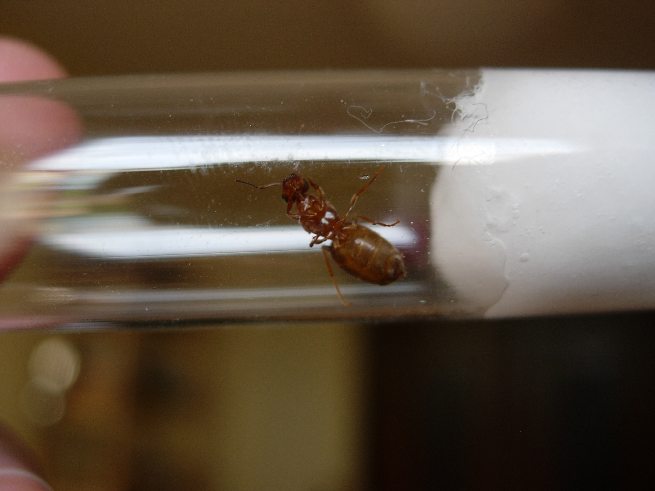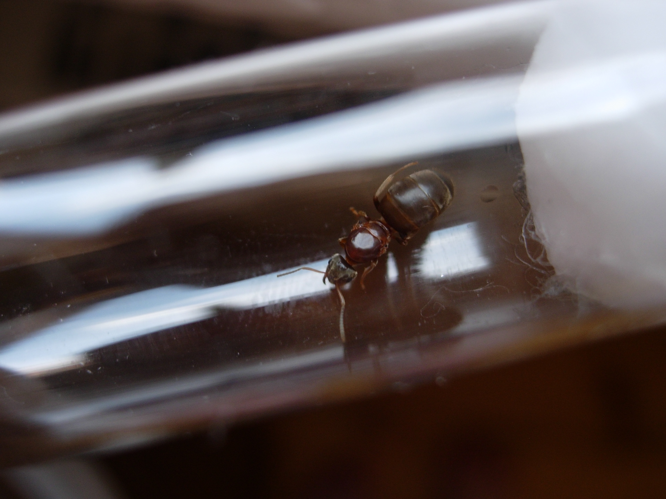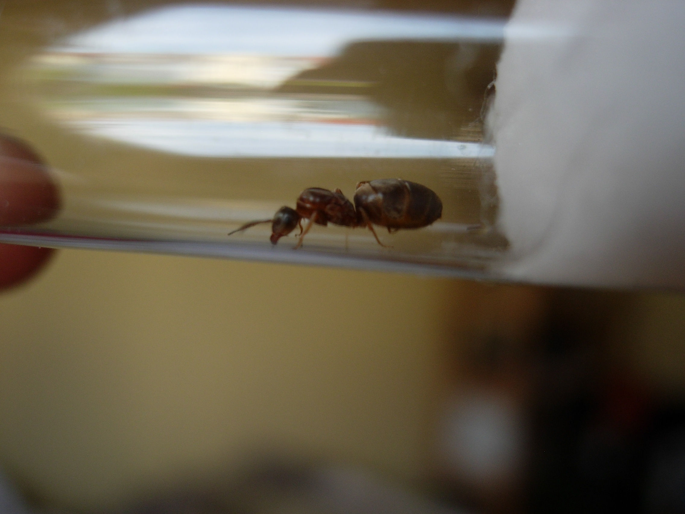 Die Ameise ist ohne Fühler und Hinterbeine genau 7,5 mm groß. Kopf und