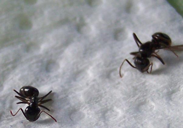 Die größe der Arbeiterinnen ist ca. 6-8mm (geschätzt, nicht gemessen, es gibt hier kein Kästchenpapier, geschweige denn ein Lineal...)