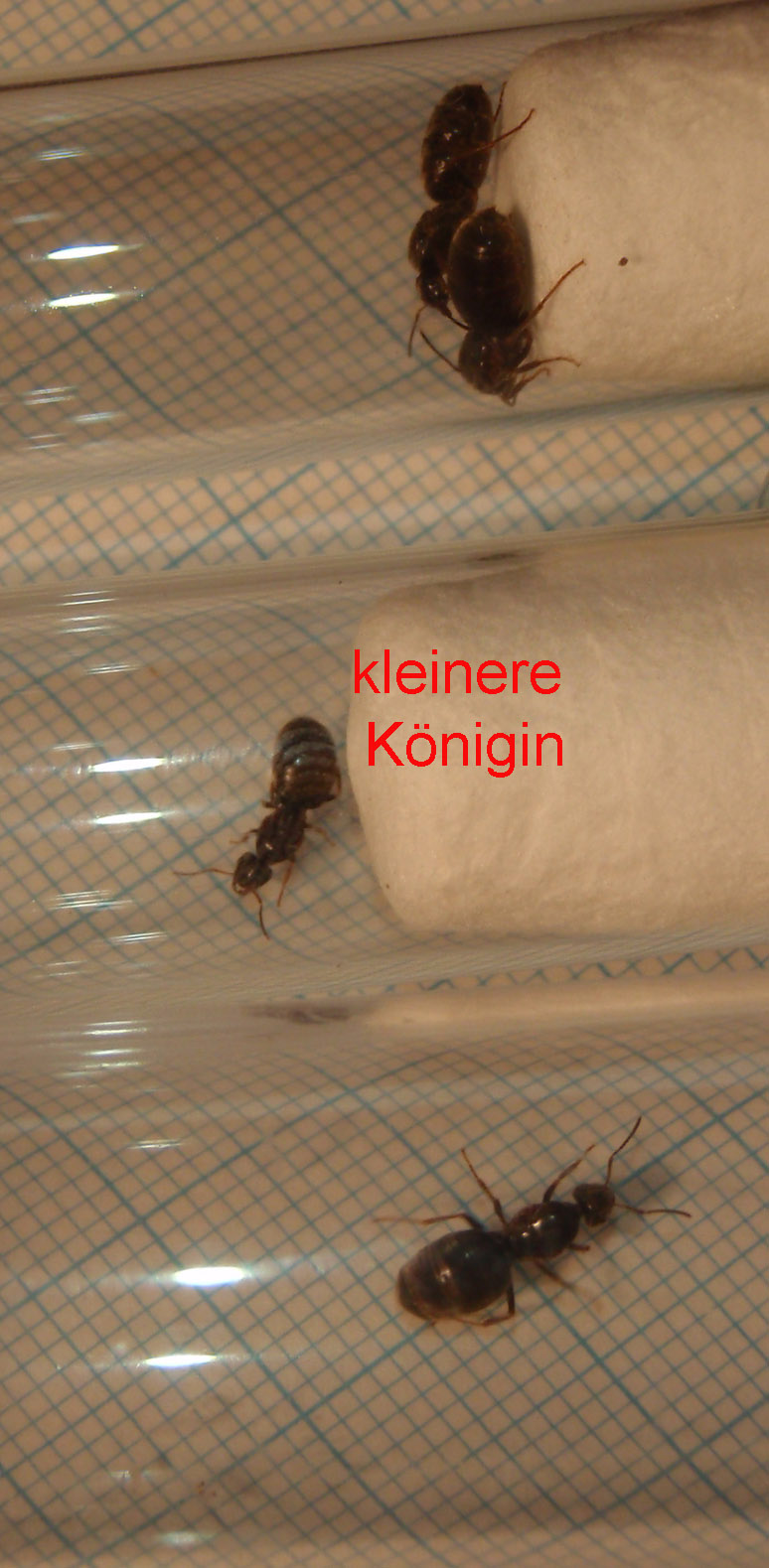 - Kleine Königin ist ca. 7-8mm groß und hat eventuell rötliche Beine (bin mir aber nicht sicher)