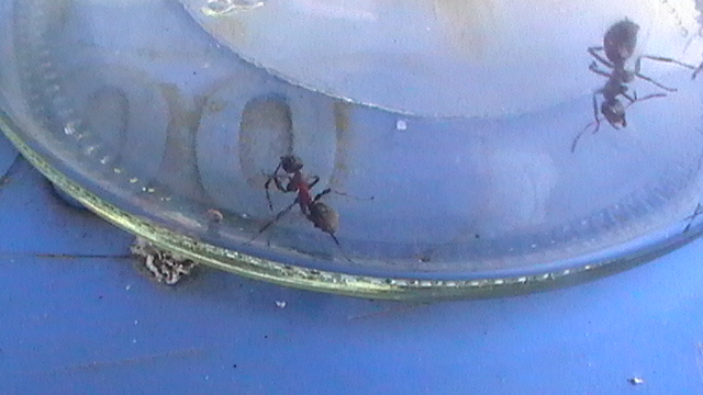 ) Zuerst dachte ich an Formica sanguinea, dann an Formica pratensis, aber ich denke nicht das es eine sanguinea ist. Dann bekam ich den Tipp, es könnte eine rufibarbis, claraoder cunicularia sein.
