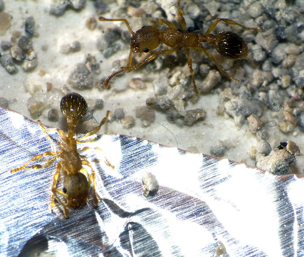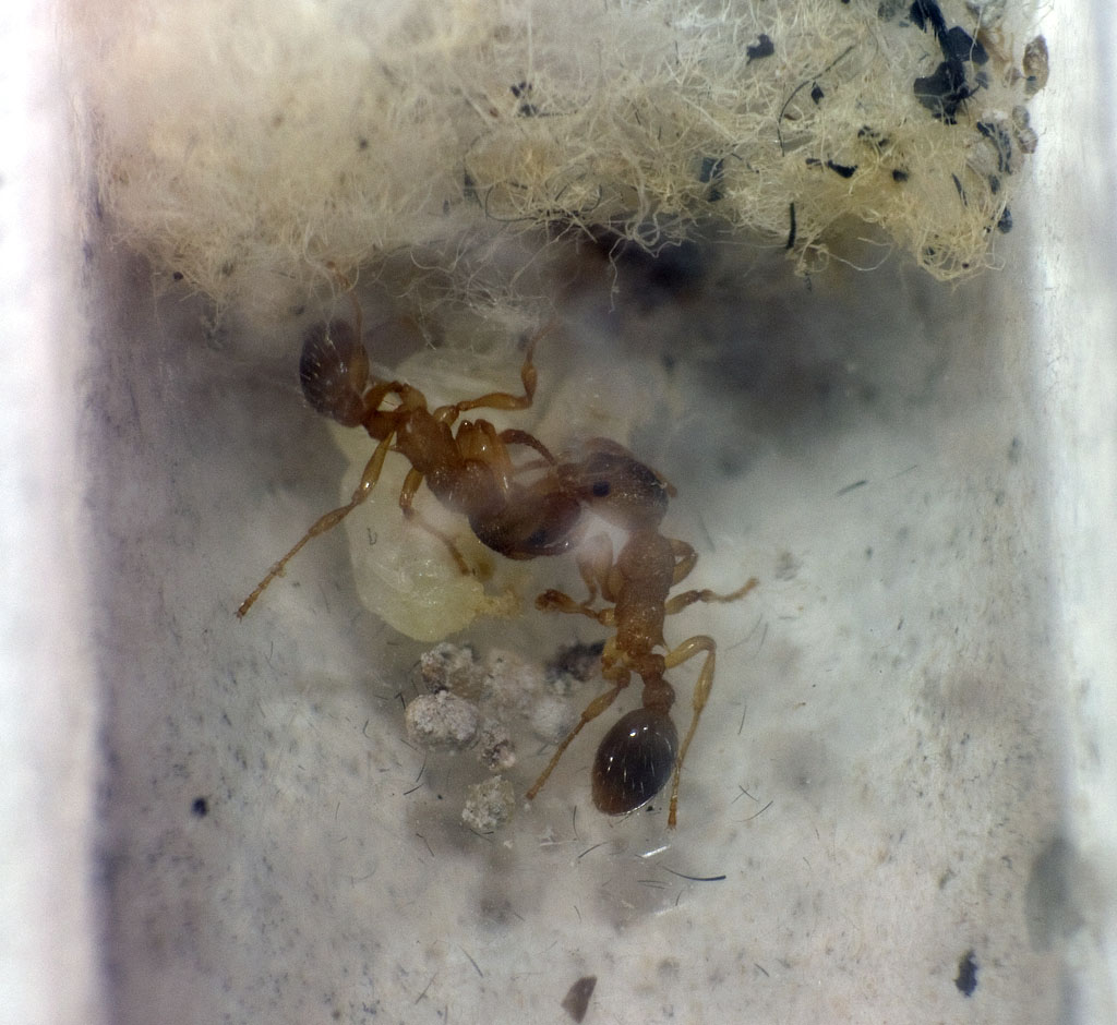 ich habe mich gerade mal im Garten umgesehen, was die hiesigen Ameisen so treiben. Unter einem Stein, wo sich zahlreiche Lasius cf. niger und SteinlÀufer drumherum tummelten, fand ich dann auch diese