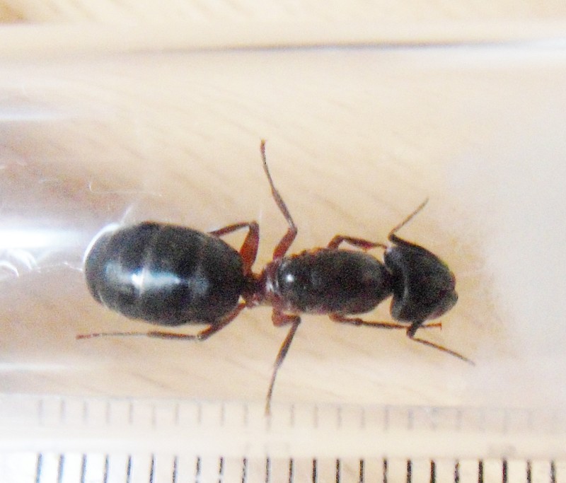 Die Schilderung der Größe von ca. 2cm sowie die der Färbung, kann man eine Waldameise ausschließen. Auch für die schwarzen Formica-Arten ist deine