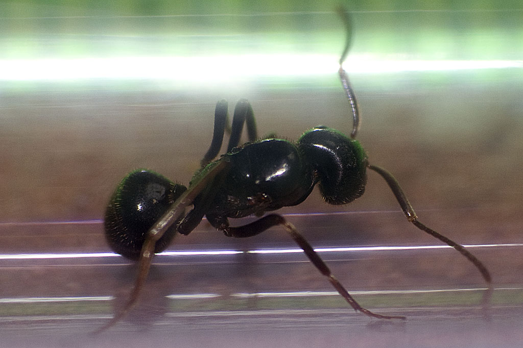 als ich gerade als ich, vor dem Regen flĂŒchtend, nach Hause kam, direkt vor unserer TĂŒr eine Gyne gefunden. Beim betrachten mit dem bloßen Auge, dachte ich schon, dass die Tetramorium sp. hinterm Haus geschwĂ€rmt sind, aber wenn ich mir nun die Makroaufnehmen ansehe, kommt mir doch eher L. fuliginosus in den Sinn.