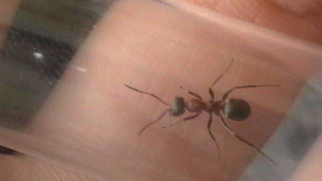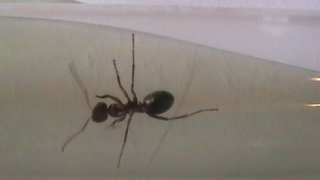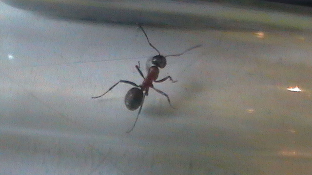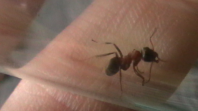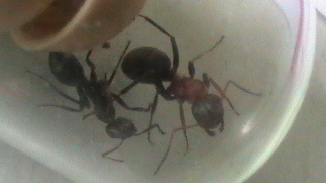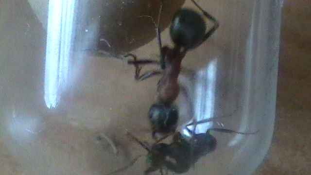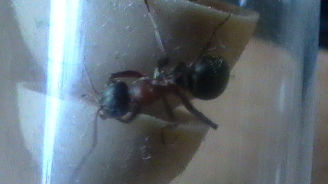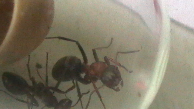 Die halbtote Ameise neben der Formica cf. clara ist übrigens eine Formica cf. rufibarbis zum Vergleich-sie wurde von der clara(?) etwas...gekitzelt.