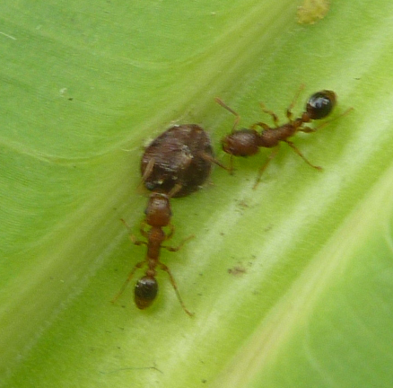 Die ersten zwei Bilder sind Knotenameisen von ca 4mm GröĂe. Sie zĂŒchten SchildlĂ€use auf BananenblĂ€ttern.