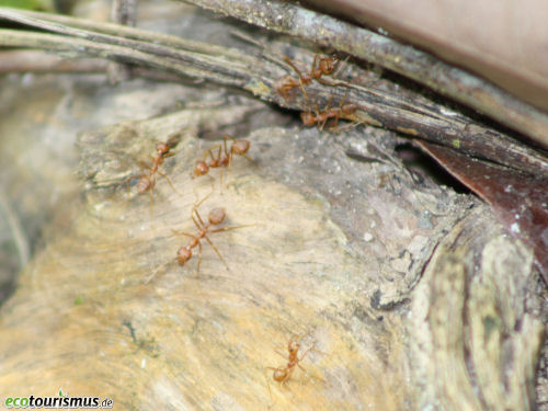 Die orangenen Tiere sind meiner Meinung nach Oecophylla smaragdina. Sie sind im sĂŒd-ostasiatischen Raum vergleichsweise hĂ€ufig und legen wie Polyrhachis spec. gewebte Nester an.
