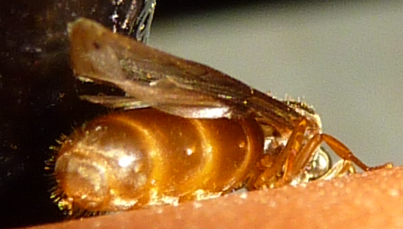Auf den Bildern sieht sie vor allem am Hinterleib heller aus, als in natura (wegen Blitz)