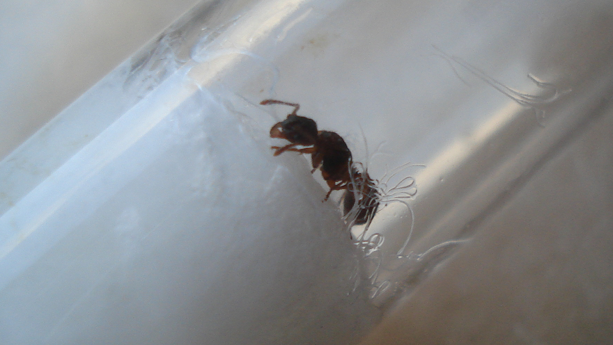 Heute ist mir eine Ameise ĂŒber den Weg gelaufen, ich denke es ist eine Myrmica spec. aber genau kann ich das nicht sagen.