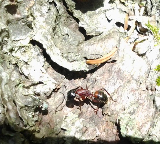 Beim letzten Bild wĂŒrde ich ziemlich sicher sagen, dass es das Nest einer Formica s. str. ist. Wenn man sich mal ein einzelnes Tier herauspickt, sieht man einen sehr hellen, roten Thorax. So eine FĂ€rbung ist mir von keiner heimischen Camponotus bekannt, Camponotus ligniperdus (Bei der Bestimmung der einzelnen Ameise wĂŒrde ich Icon zustimmen, dass es sich um Camponotus ligniperdus handelt) hat ja eher eine dunkelrote FĂ€rbung.