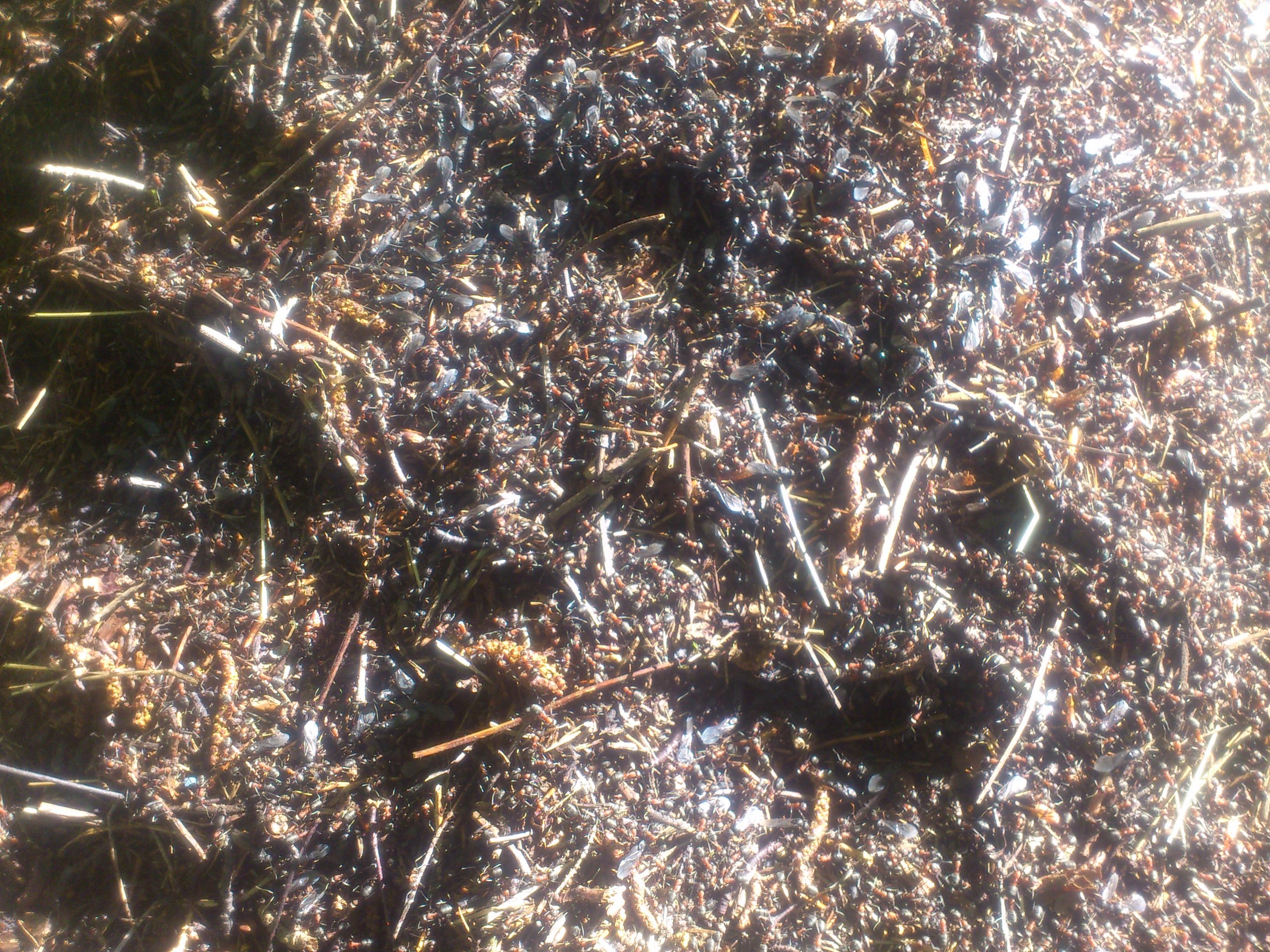 Auch das letzte Bild zeigt eindeutig einen AmeisenhĂŒgel v. Formica sp. mit zahllosen Geschlechtstieren auf der NestoberflĂ€che. Es handelt sich dabei um Formica polyctena od. F. rufa - sofern die Aufnahmen v. den letzten Tagen stammen.