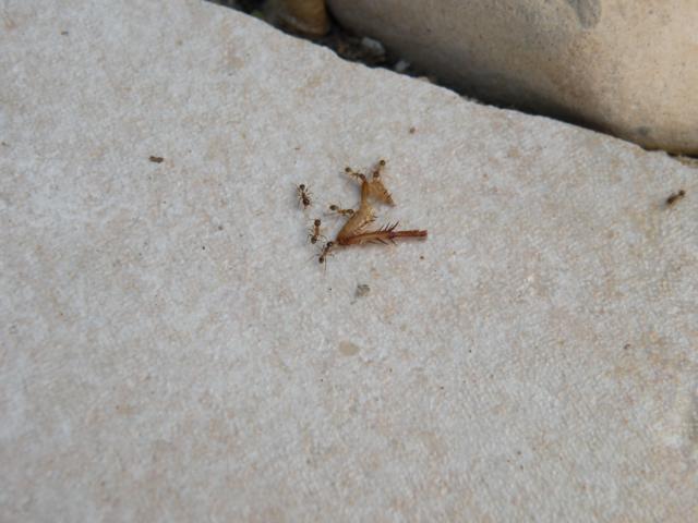 [font=Calibri]An unserem Haus konnte ich fo[/font][font=Calibri]lgende Ameisen beobachten, die gerade dabei waren, eine tote Kakerlake abzutransportieren. Die KörpergröĂe betrug etwa 1-2mm und es waren deutlich unterschiedliche Erscheinungsbilder zu erkennen. SpĂ€ter hatte ich sogar das GlĂŒck, einen Schwarmflug miterleben zu können:[/font]