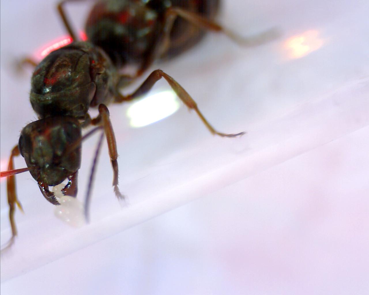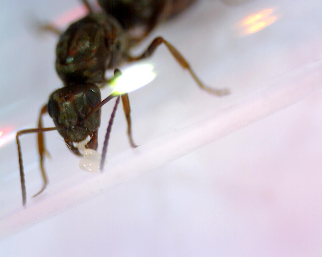 ich habe vor 2 Tagen bei über 25°C am Nachmittag die folgende Gyne eingefangen. Der Fundort ist in Brandenburg in der Nähe von Potsdam, also ca. 30 m über'n Meeresspiegel. Eingefangen habe ich sie auf einer Verkehrsinsel. Nähe zu Wald (ein paar 100 m) und Wiese (50 m) ist einigermaßen gegeben. Der Boden ist wie überall hier sandig. Es dürfte wohl eine Formica sein. Anbei habe ich ein paar Bilder angefügt. Ich hoffe sie reichen für eine Bestimmung aus. Es war recht schwer mit der einen Hand das USB-Mikroskop auszurichten und mit der anderen Hand den Knipsknopf am PC zu drücken. :) Aber sie hat es zum Glück relative Gelassen hingenommen. Ein paar Eier hat sie übrigens auch schon gelegt!
