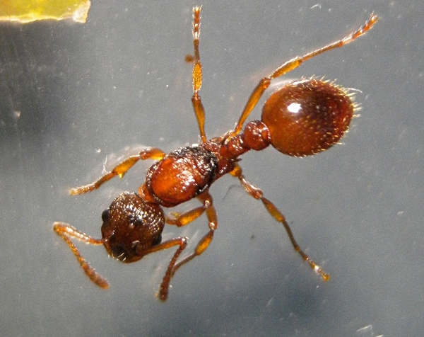 für Alle, die über Weihnachten Langeweile haben (grins), habe ich gestern Abend bei 2°C (und verher eine Woche lang Dauerfrost) an einer kleinen Gartenmauer in Deggendorf diese Ameise aufgelesen. Lässt sich die anhand der schlechten Fotos bestimmen? Und gibt's 'ne Erklärung dafür, warum die im Winter draussen rumkriecht?