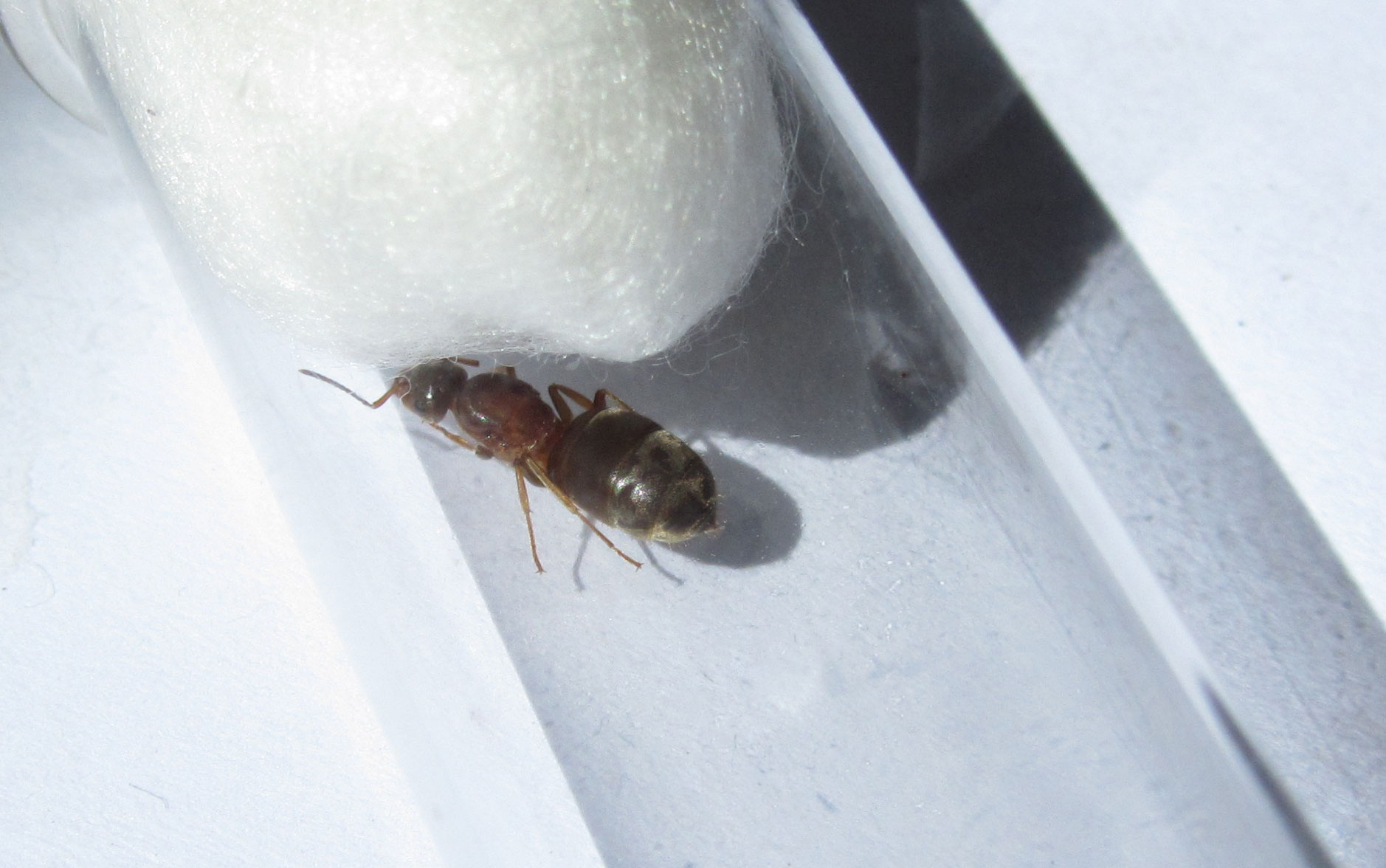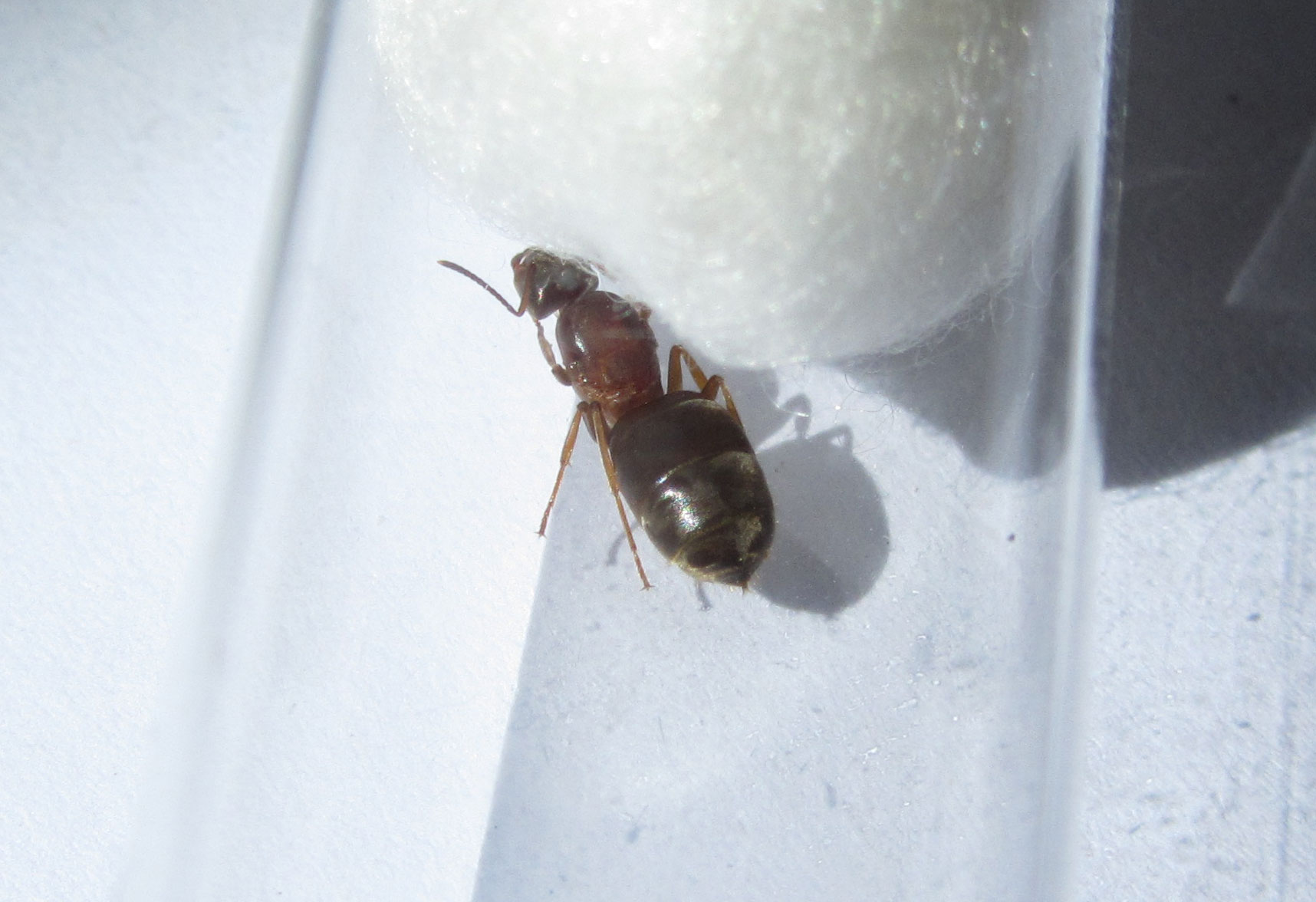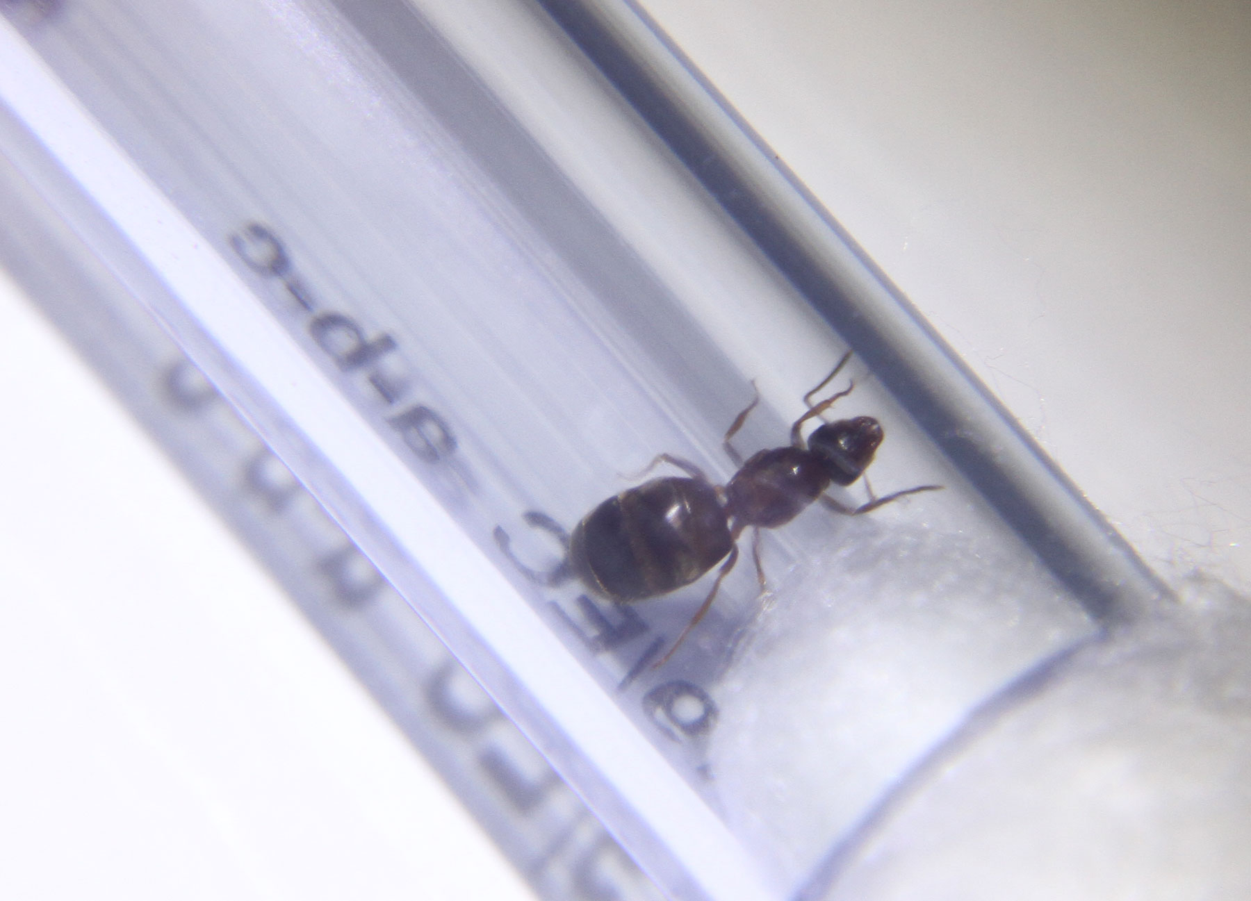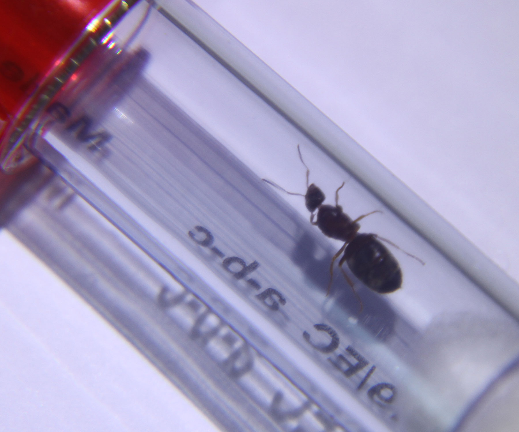 Heute habe ich ein Stück transparenten Schlauch an das Reagenzglas gesteckt, als Verlängerung um im Falle des Falles dort hinein etwas Futter zu geben, um nicht das Reagenzglas direkt zu verschmutzen. Diesen neuen Bereich hat sie dann auch gleich erkundet.