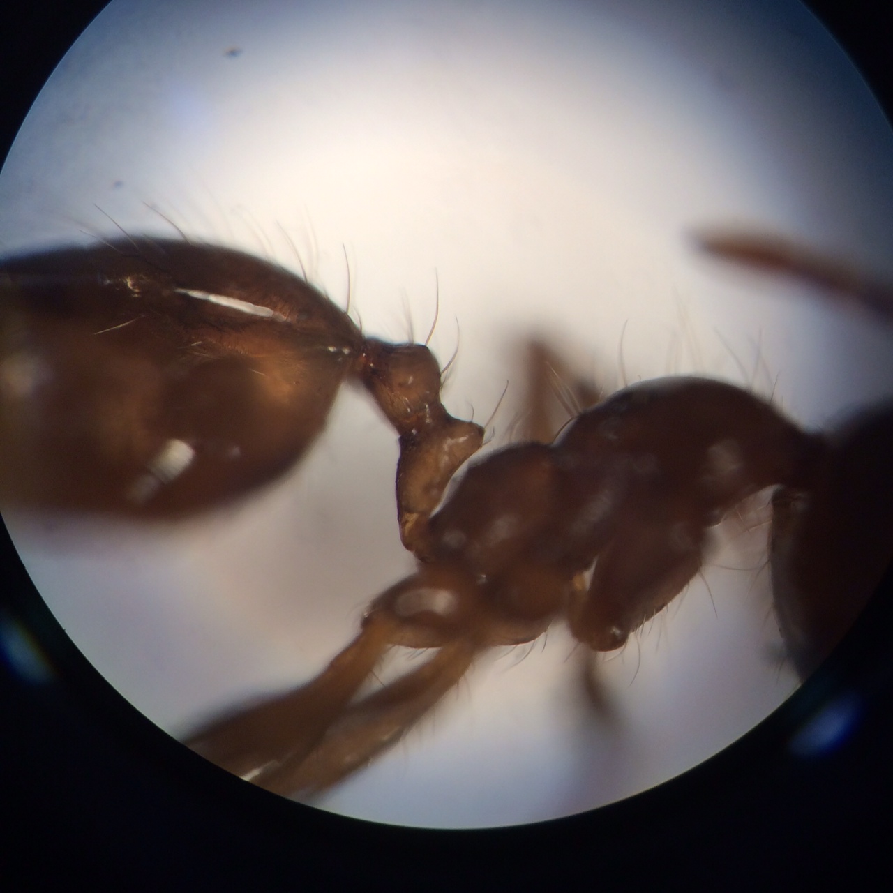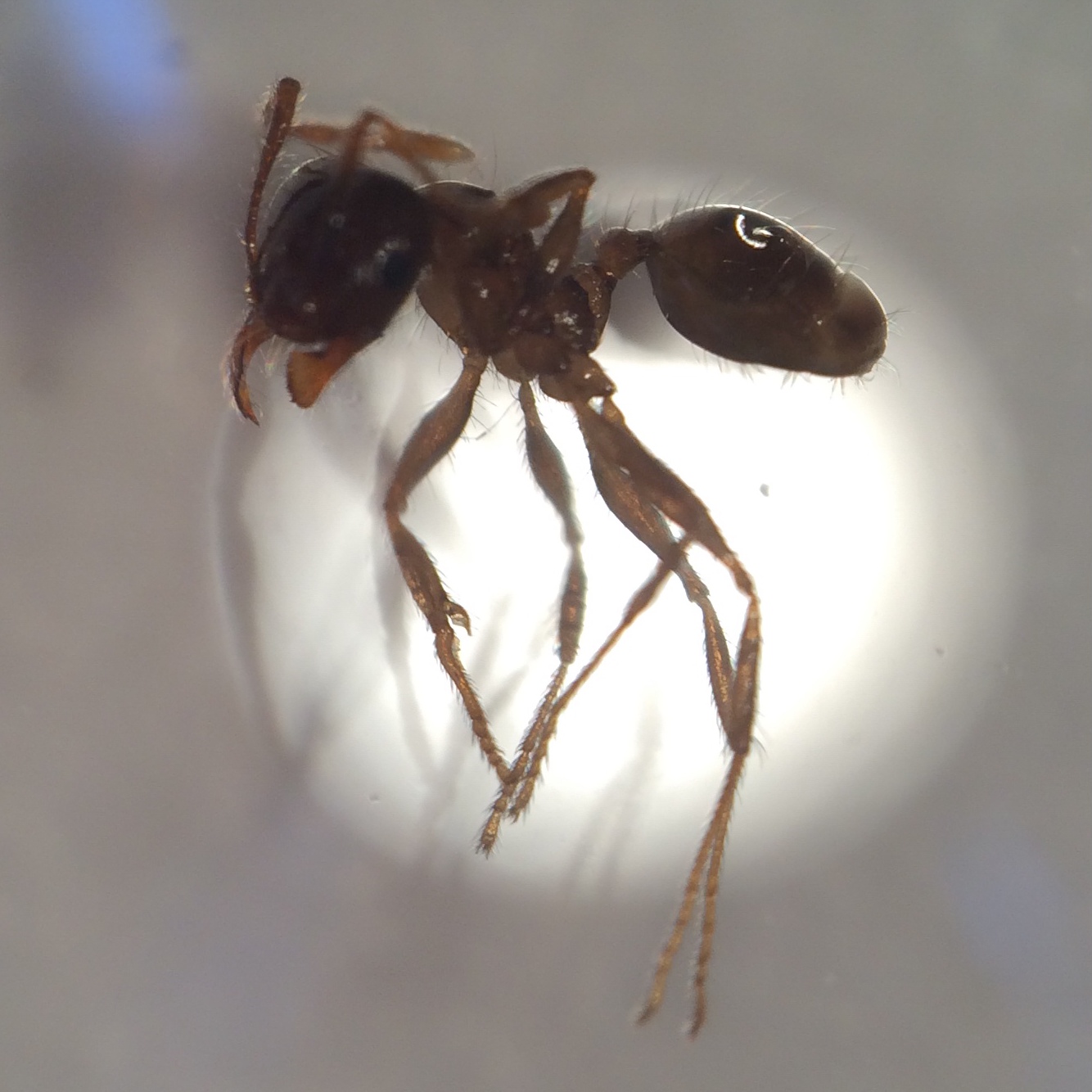 Die Ameise erinnert mich sehr an eine Aphaenogaster. Vorallem wegen der Kopfform. Aber es ist auf den Bildern schwer zu erkennen, es könnte durchaus auch eine Myrmica sein. Wie sehen die Stacheln am Ende des Thorax aus? Kannst du den Kopf von oben ablichten?