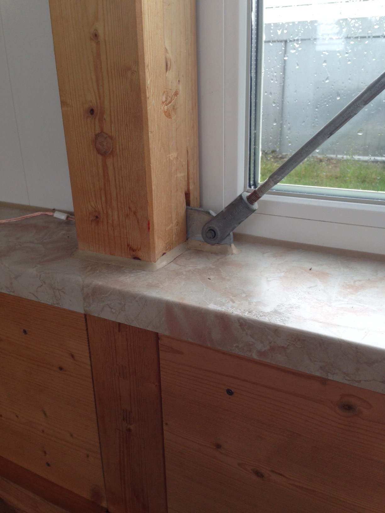 Wenn man die untere Holzverkleidung abnimmt, sieht man lediglich eine Folie und dahinterliegendes Dämmmaterial.