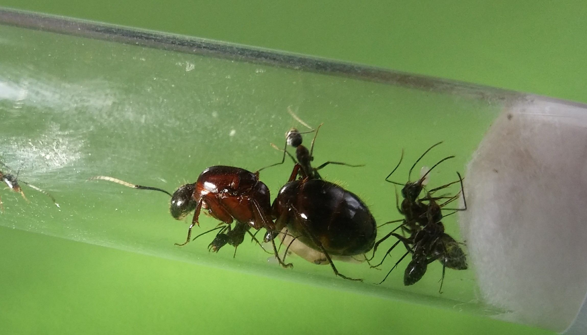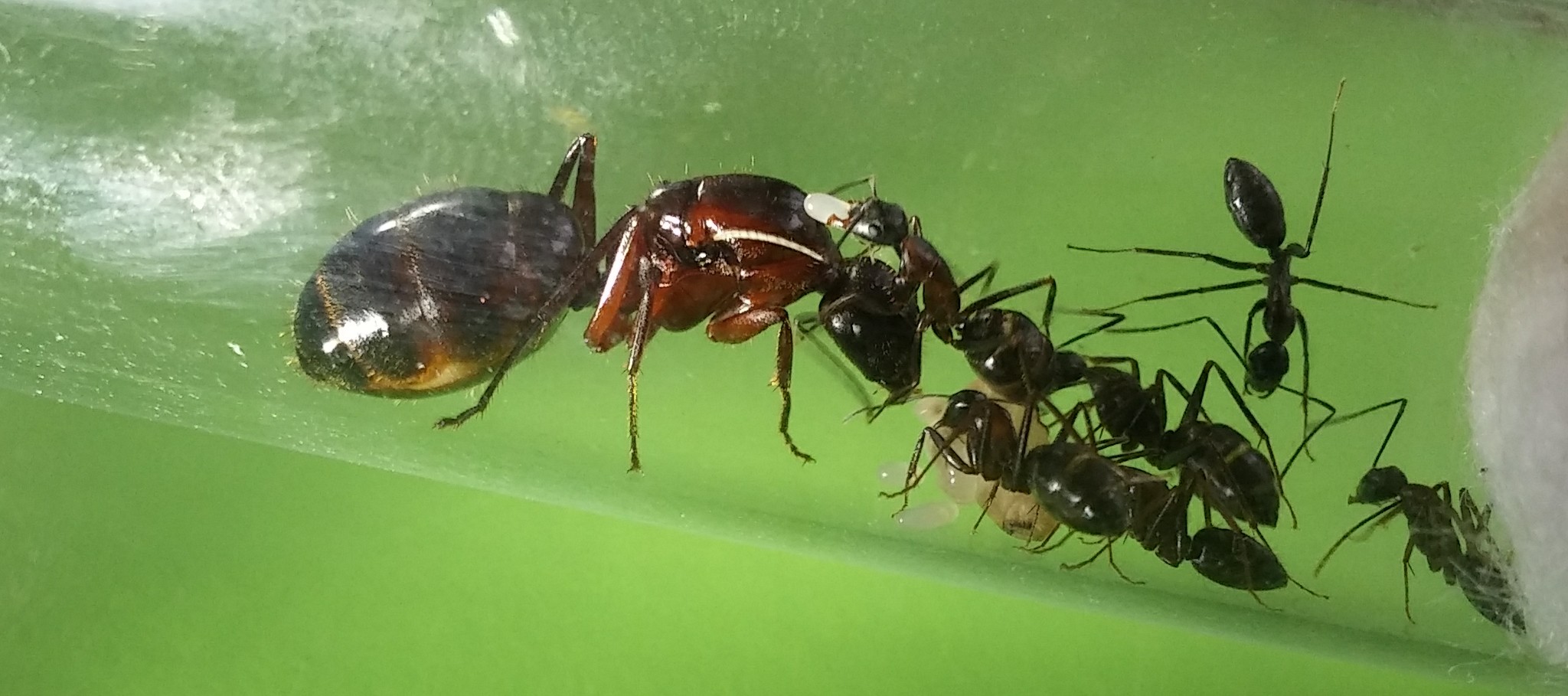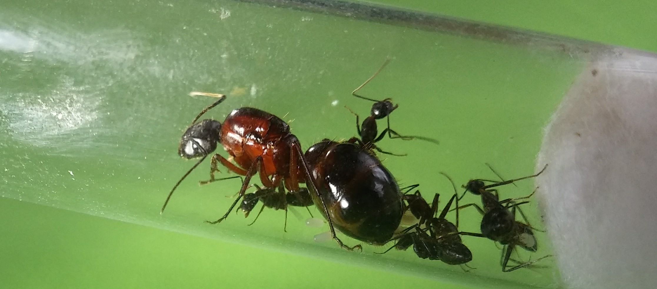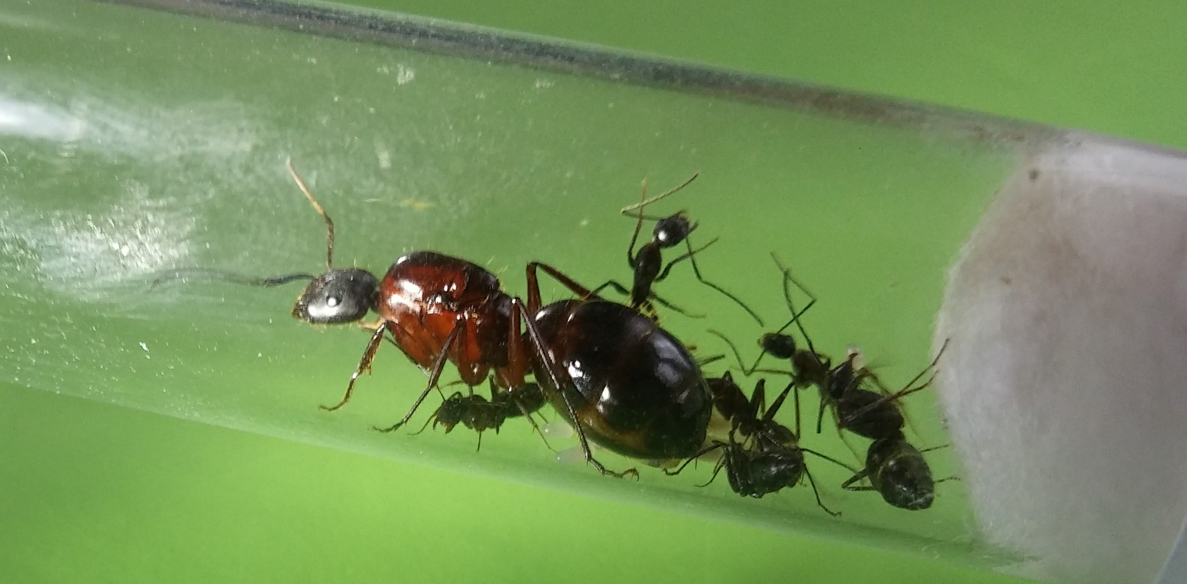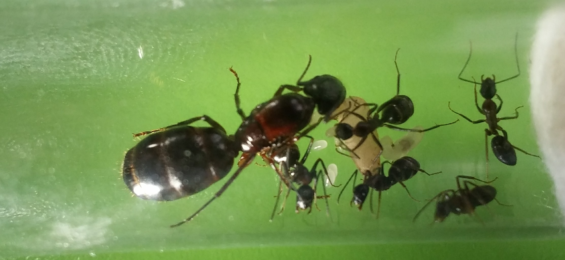 Die Rotfärbung ist bei den einzelnen Ameisen unterschiedlich stark ausgeprägt, bei mir haben einige einen stark roten Torso, andere dagegen sind komplett schwarz. Auch die
