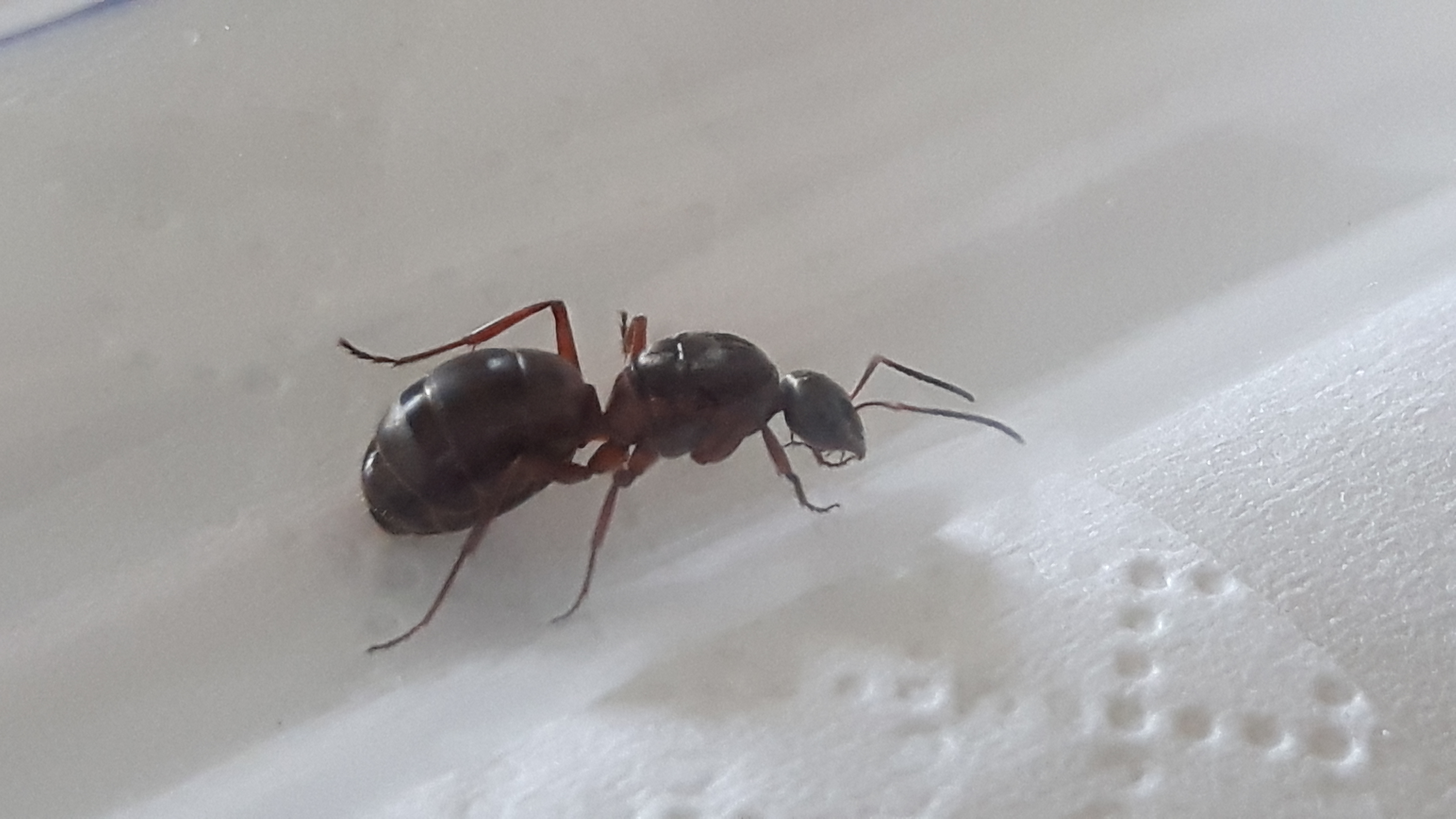 Ich bin neu was die Zucht/Ameisenfarm angeht. Hab zum fangen einer Königin alles vorbereitet. Regenzglas mit Wassertank. Nun fehlte nur noch die Königin. Ich also mehrmals am Tag raus und ausschau nach Schwarmflug gehalten, nix. Bis ich heute an einer Fassade lang ging (die im Schatten war) und diese Königin fand.