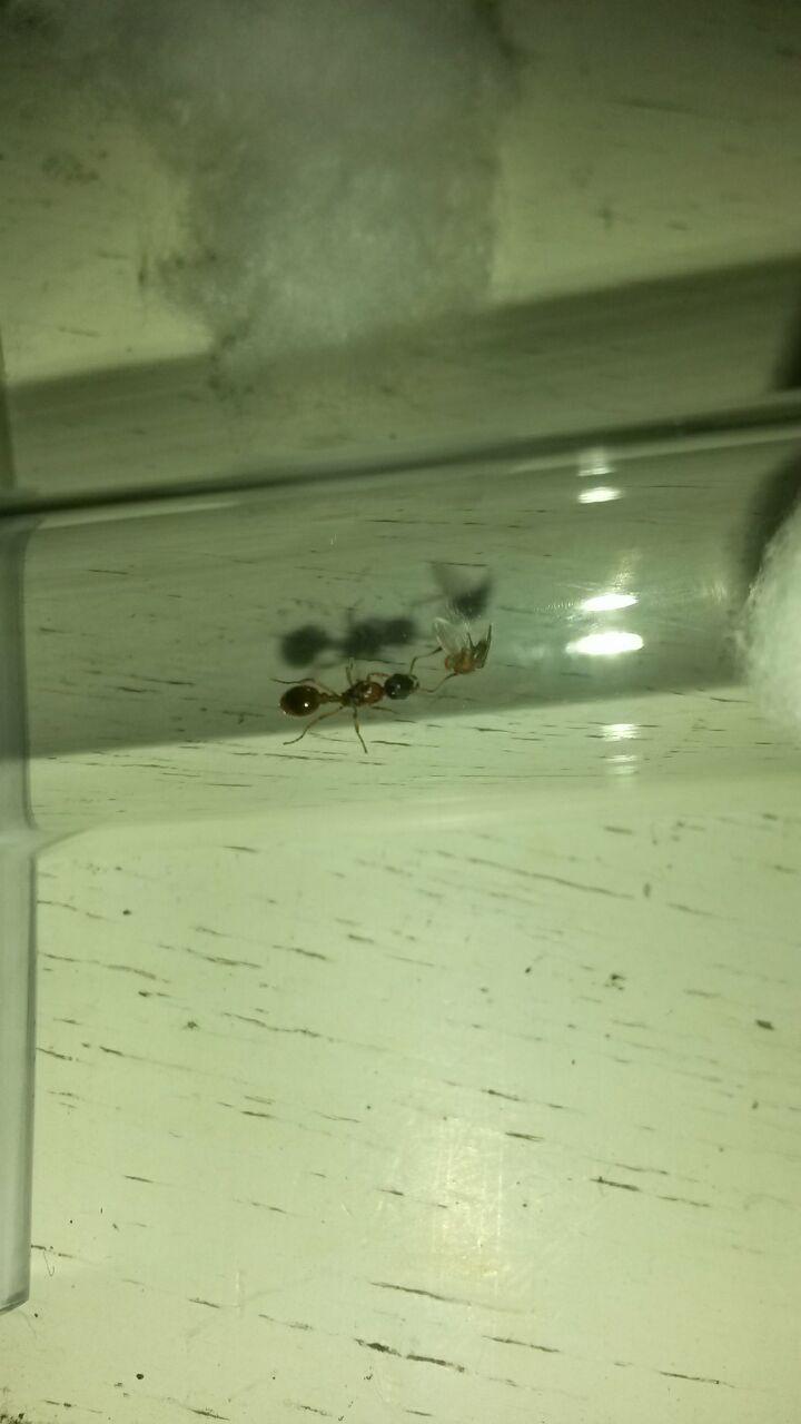 Die größere Ameise war zusammengekringelt, vielleicht um besser transportiert zu werden.