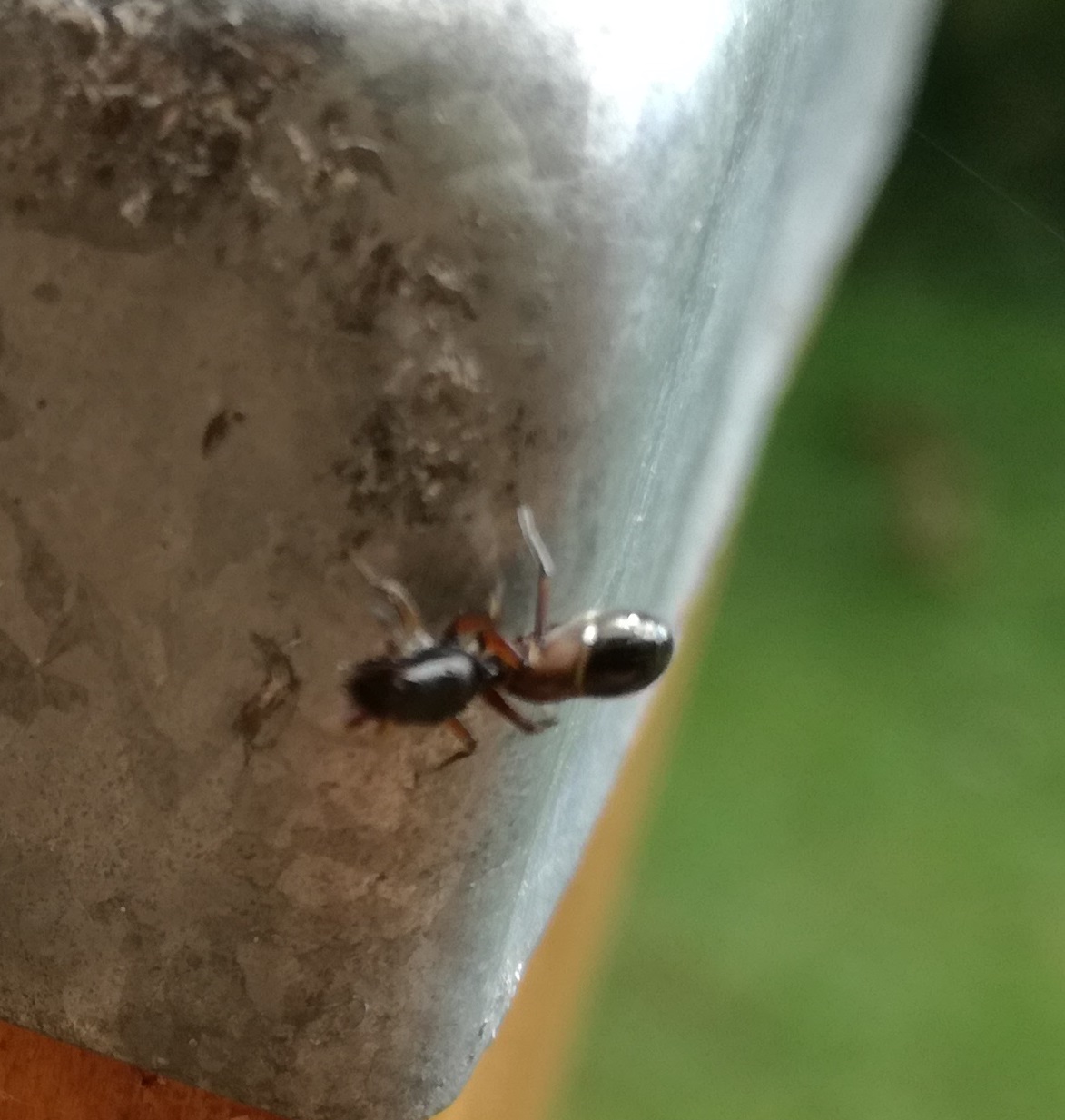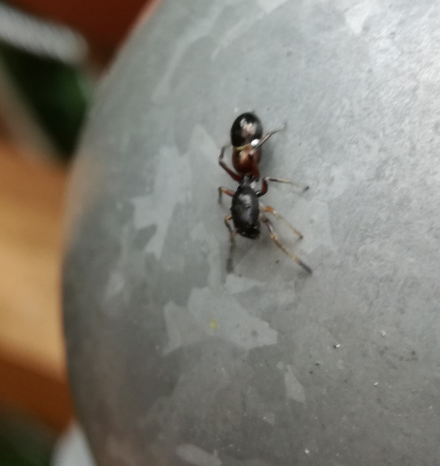 Das anhängende Tier hab ich grade auf meinem Gartenzaun entdeckt. Sieht für mich auf den ersten Blick wie eine Ameise aus, bewegt sich aber sehr... "komisch". Sehr abgehackt. Ist extrem aktiv mit den Fühlern und wirkt allgemein etwas hektisch.