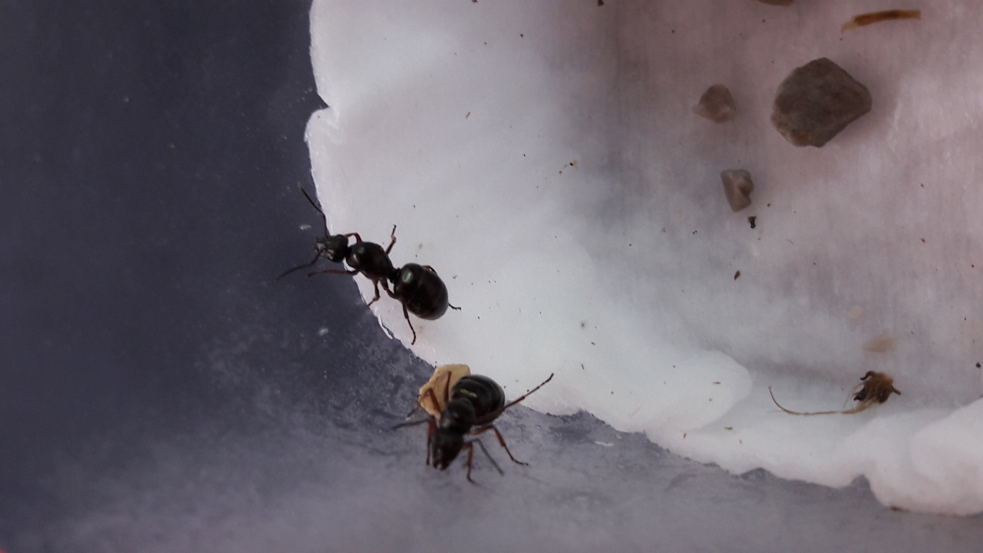 Hallo. Heute auf eine Wanderausflug sind mir diese zwei schönen Damen ĂŒber den Weg gelaufen, hab sie gleich eingefangen. Ich denke mal es ist irgendeine Camponotus Art, möchte aber gerne wissen welche. Sie haben einen glĂ€nzend schwarzen Gaster, rote Beine und einen matten, schwarzen Thorax und Kopf.
