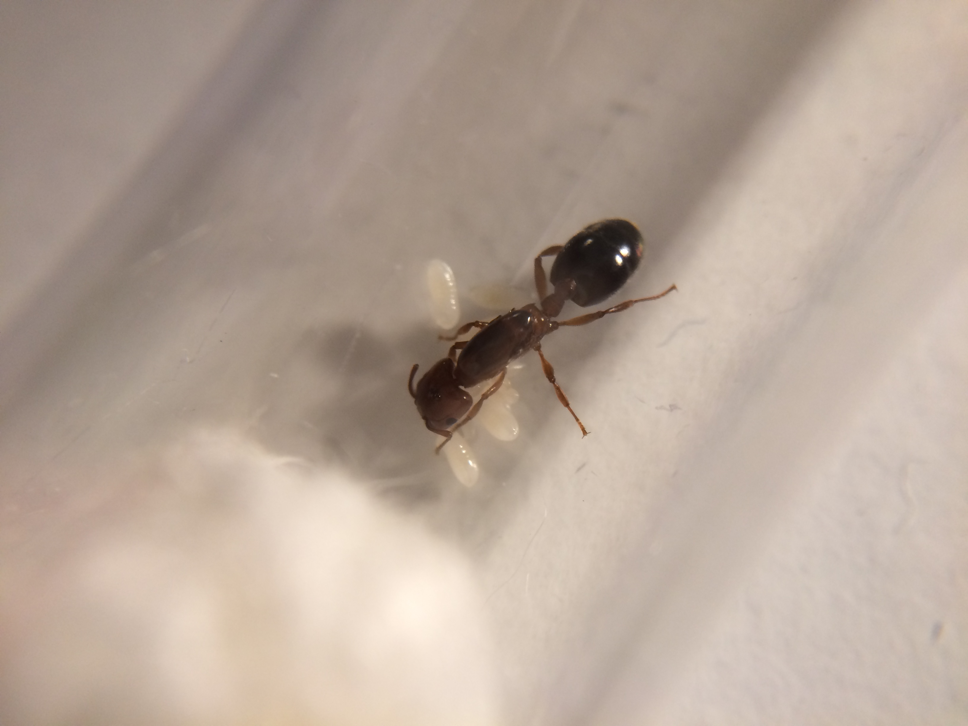 Die Königin, die ich für Pheidole hielt :andiewand:, ist eigentlich eine Gyne der Art Crematogaster scutellaris.