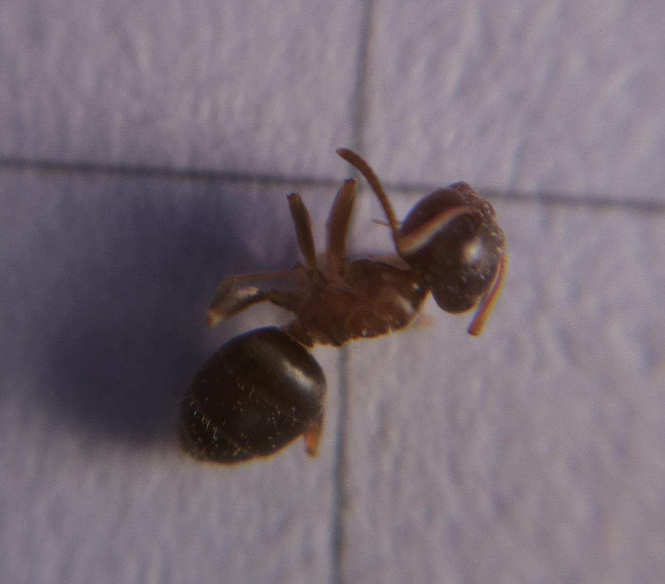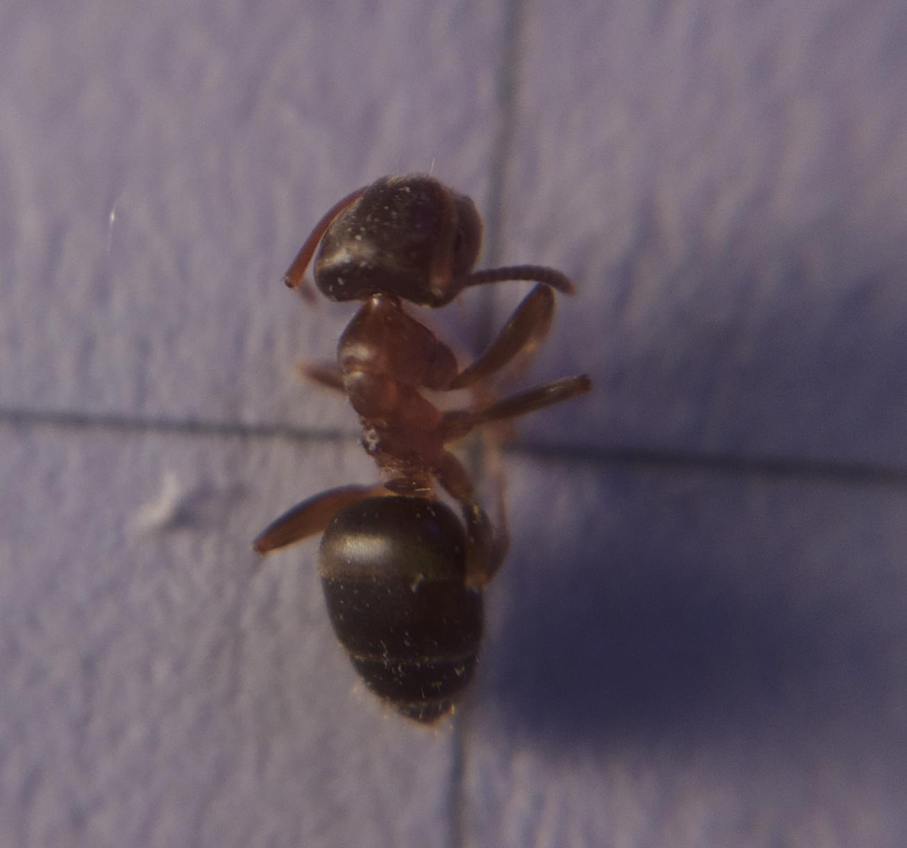 diese Arbeiterin habe ich in einer Wohnung gefangen. Sie wirkte nicht gerade schreckhaft, kann aber recht schnell laufen, wenn sie MenschenhÀnden zu entkommen versucht. Sie ist brÀunlich gefÀrbt und etwa 5 mm lang. Der BehÀlter, in dem ich sie transportiert habe, war etwas staubig.