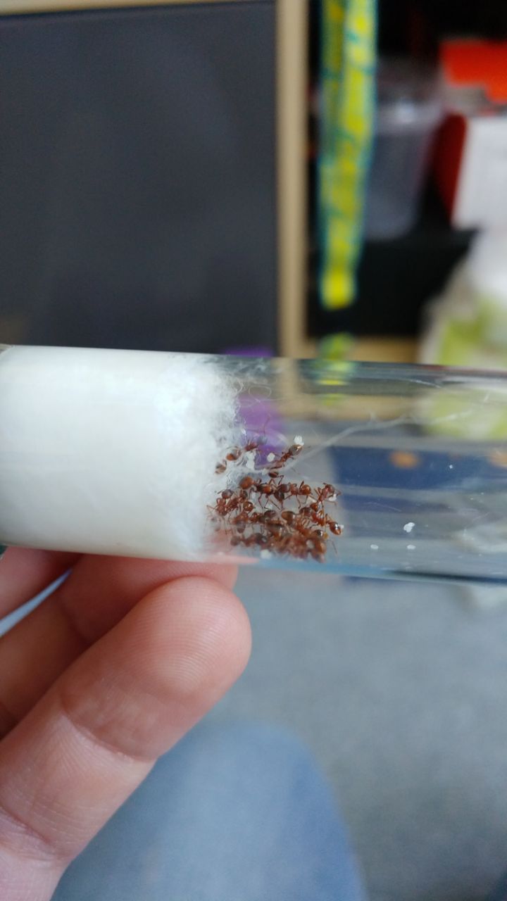 Mein Freund hat diese Kolonie aus der Natur mitgenommen und hat mir ein Bild davon geschickt bin mir aber nicht sicher ob es sich um Myrmica rubra oder Myrmica ruginodis handelt. Obwohl ich eher zu Myrmica rubra tendiere.