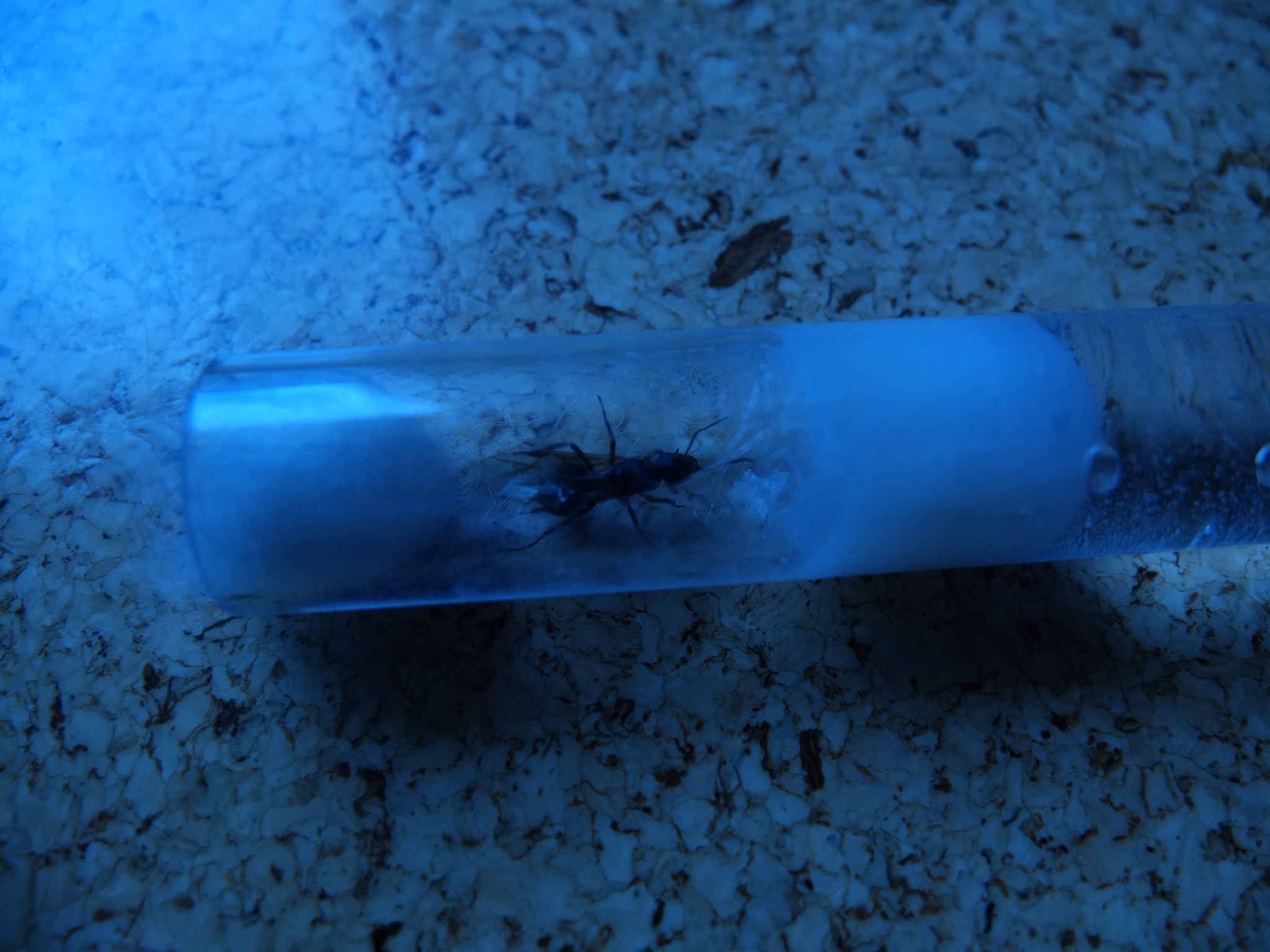 Ich würde mal auf eine Lasius Art tippen, auf dem zweiten Bild kann man den doch voluminösen Gaster erkennen. Ist sie wirklich komplett Schwarz, also auch die Beine und wirklich kein rotanteil vorhanden?
