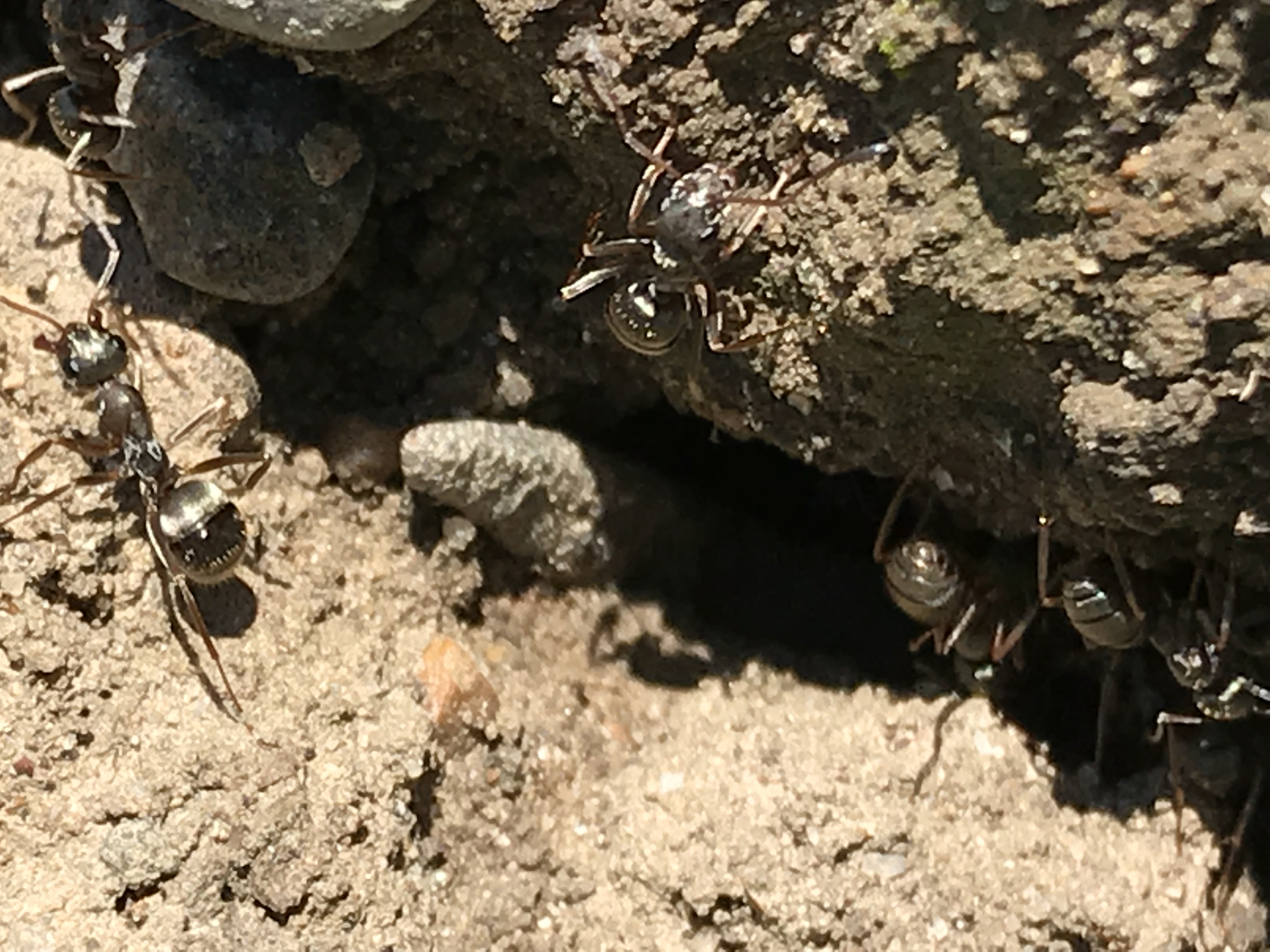 Ich noch nicht wirklich sattelfest im Bestimmen von Ameisen, und wäre daher um eure Expertenmeinung frih. Folgende Ameisenart dominiert einen Schrebergarten in der Nordostschweiz. Zuerst dachte ich an F. fusca, aber die Ameisen scheinen mir zu aggressiv dazu zu sein. Alles was in die Nähe der Nester kommt wird sofort angegriffen. Dabei stechen die Ameisen deutlich mit dem Hinterleib. Die Haut an den Händen vermögen sie nicht zu durchdringen, aber an Armen und Beinen spürt man die Stiche. Die Arbeiterinnen sind verschieden groß.