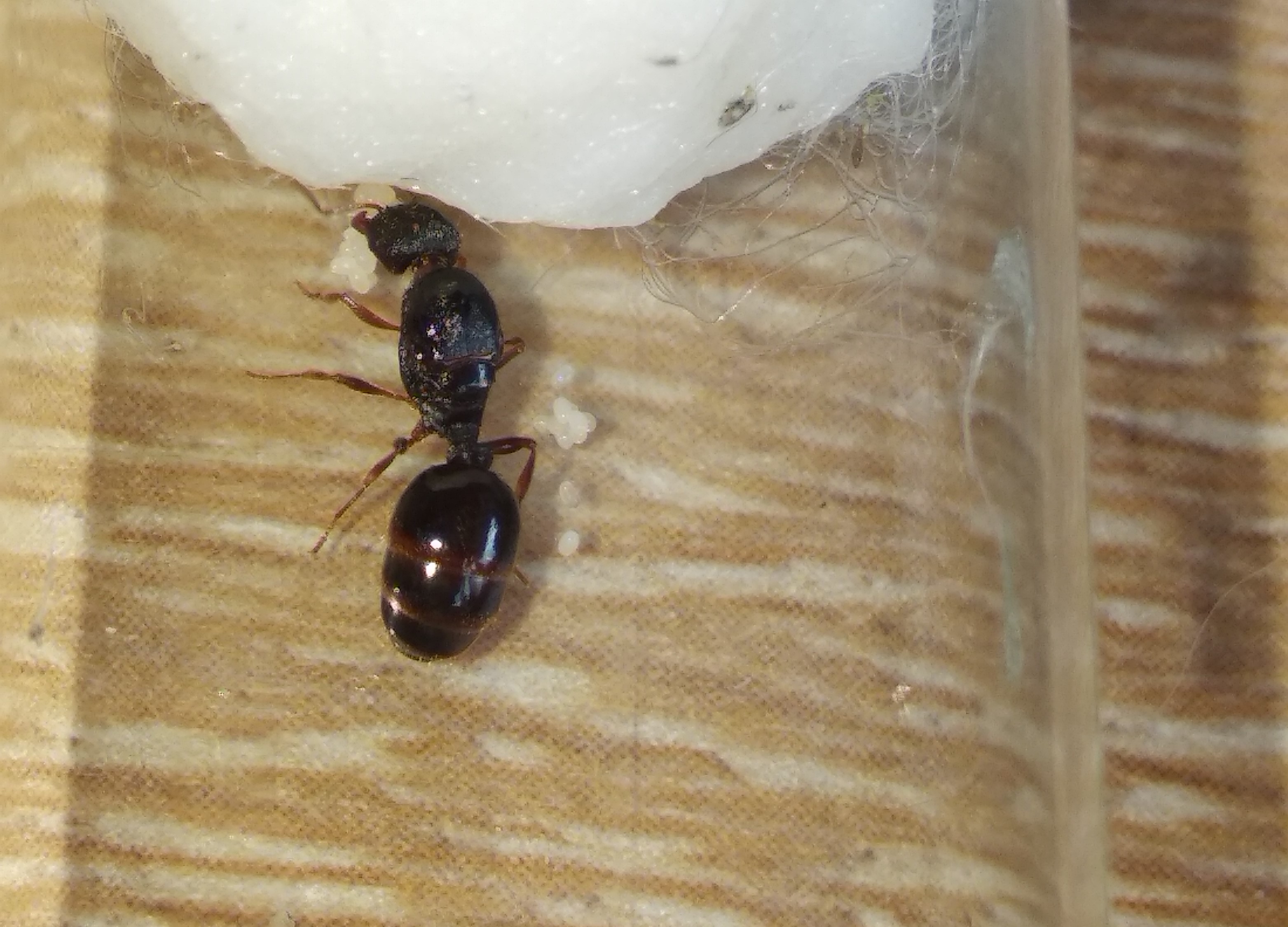 Das ist eine TetramoriumKönigin . Die genaue Art lässt sich nicht ohne weiteres bestimmen, da der gesamte Artenkomplex von Experten neu überarbeitet wird. Für die Haltung spielt das allerdings keine Rolle.