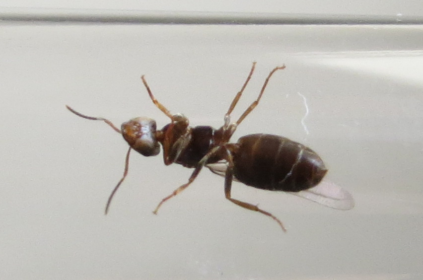ich habe gestern meine erste Ameisenkönigin gefangen, denke ich zumindest. Ich habe sie mit nur einem Flügel gefunden, welchen sie auch heute noch nicht abgeworfen hat.