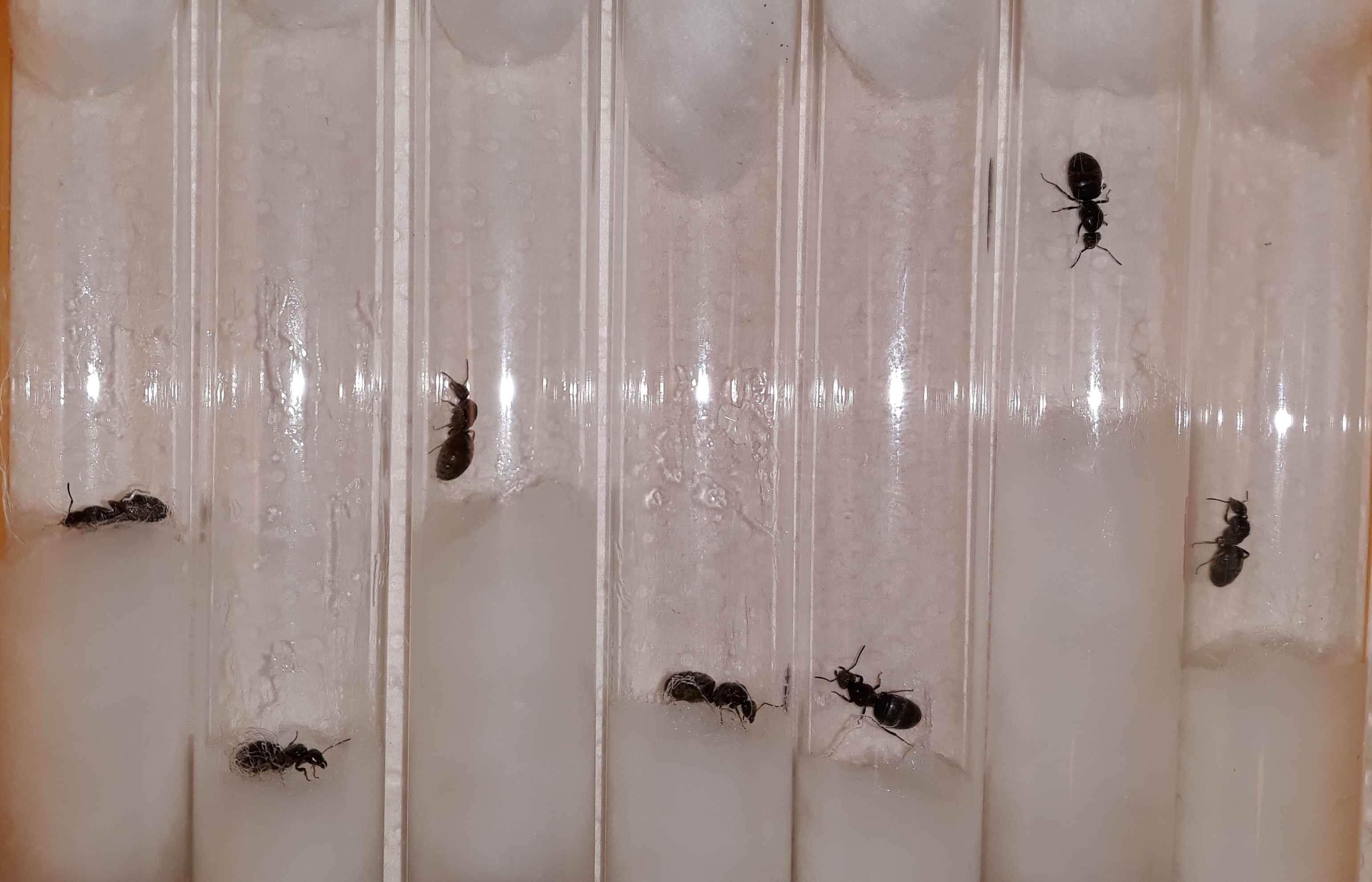 Hallo omasn. Meiner Meinung nach, handelt es sich bei allen Gynen um Lasius niger oder eine ihrer Schwesternarten. Zweifel habe ich bei Gyne 1 und 3 von links aus. Die erste Gyne sieht man nicht gut genug. Die dritte Gyne sieht auch nach einer Lasius cf. niger aus, doch wirkt die Färbung etwas merkwürdig, was eventuell auch nur am Bild liegt.