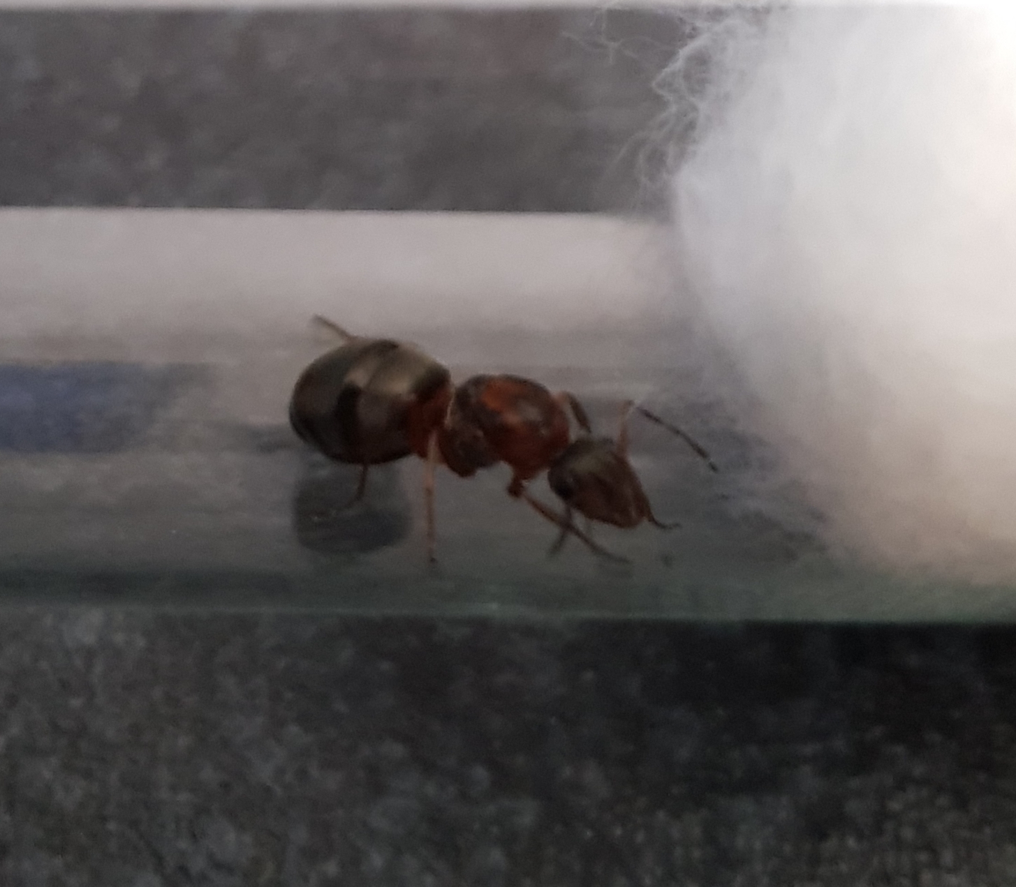 Es handelt sich um eine Serviformica cf. rufibarbis oder Serviformica cf. clara. Es gibt 3 rötliche Arten der Untergattung Serviformica. Serviformica cunicularia lĂ€sst sich anhand der Thoraxoberseite ausschlieĂen. Ob nun Formica clara oder F. rufibarbis lĂ€sst sich nicht einfach sagen.