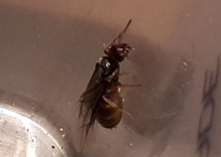 Die Geflügelten waren dunkler, fast schwarz und hatten zwei Größen. Die meisten davon war nicht viel größer als die kleinen gelben. Dann gab es aber einige, die deutlich größer waren. Ich denke, die waren mindestens doppelt so groß wie die gelben. Das Foto ist leider unscharf aber rechts oben in der Ecke ist so eine zu sehen.