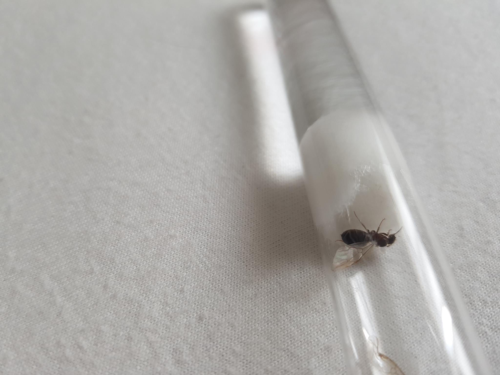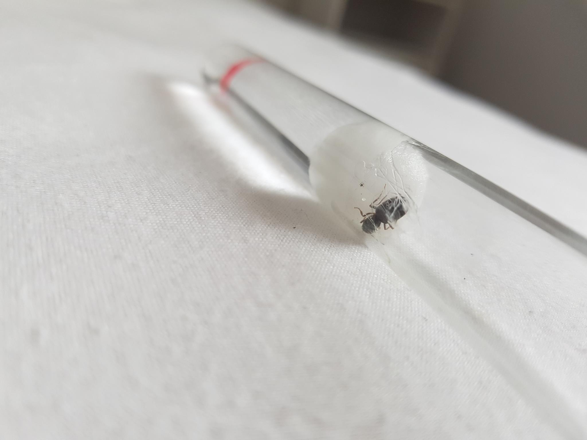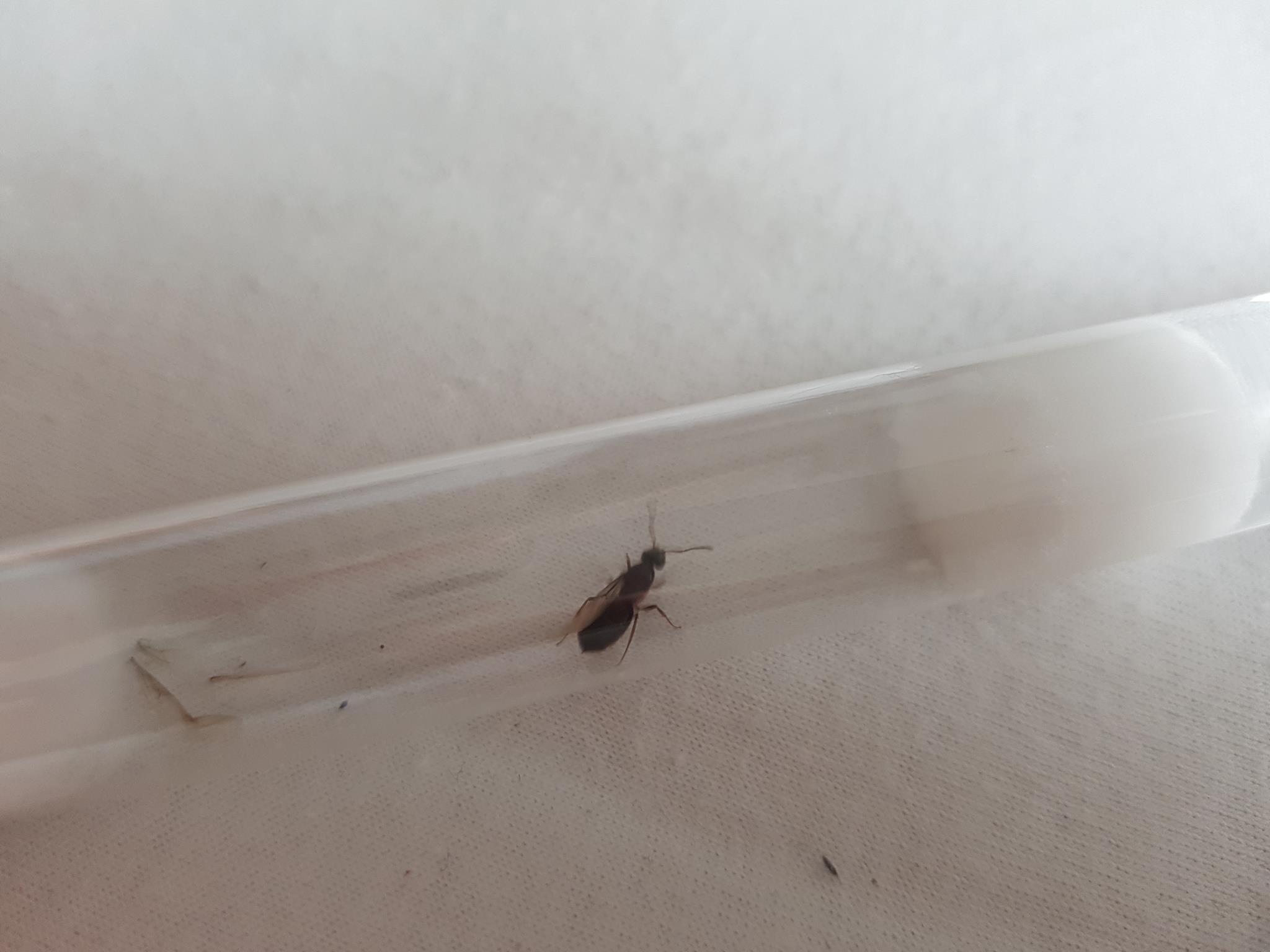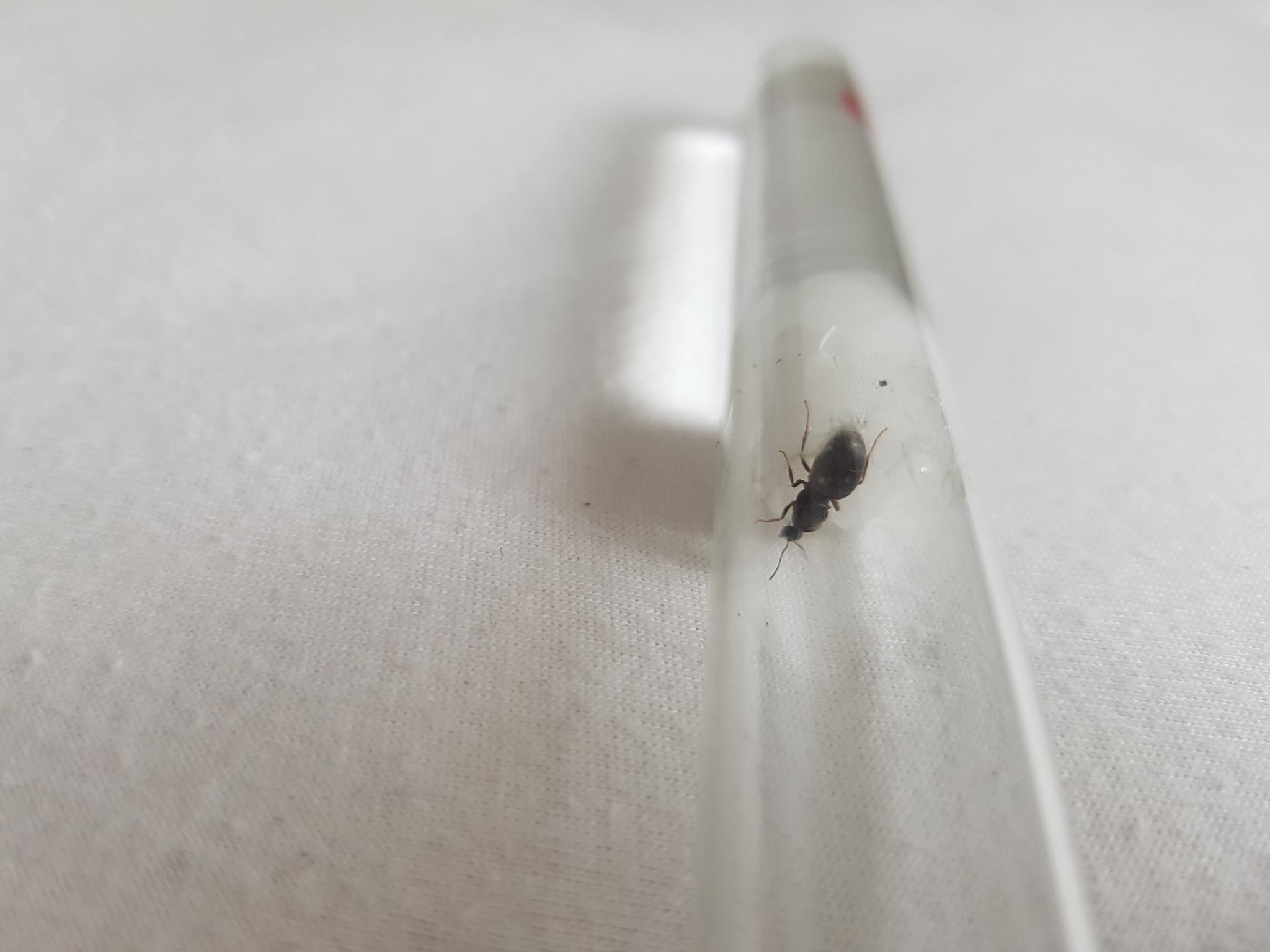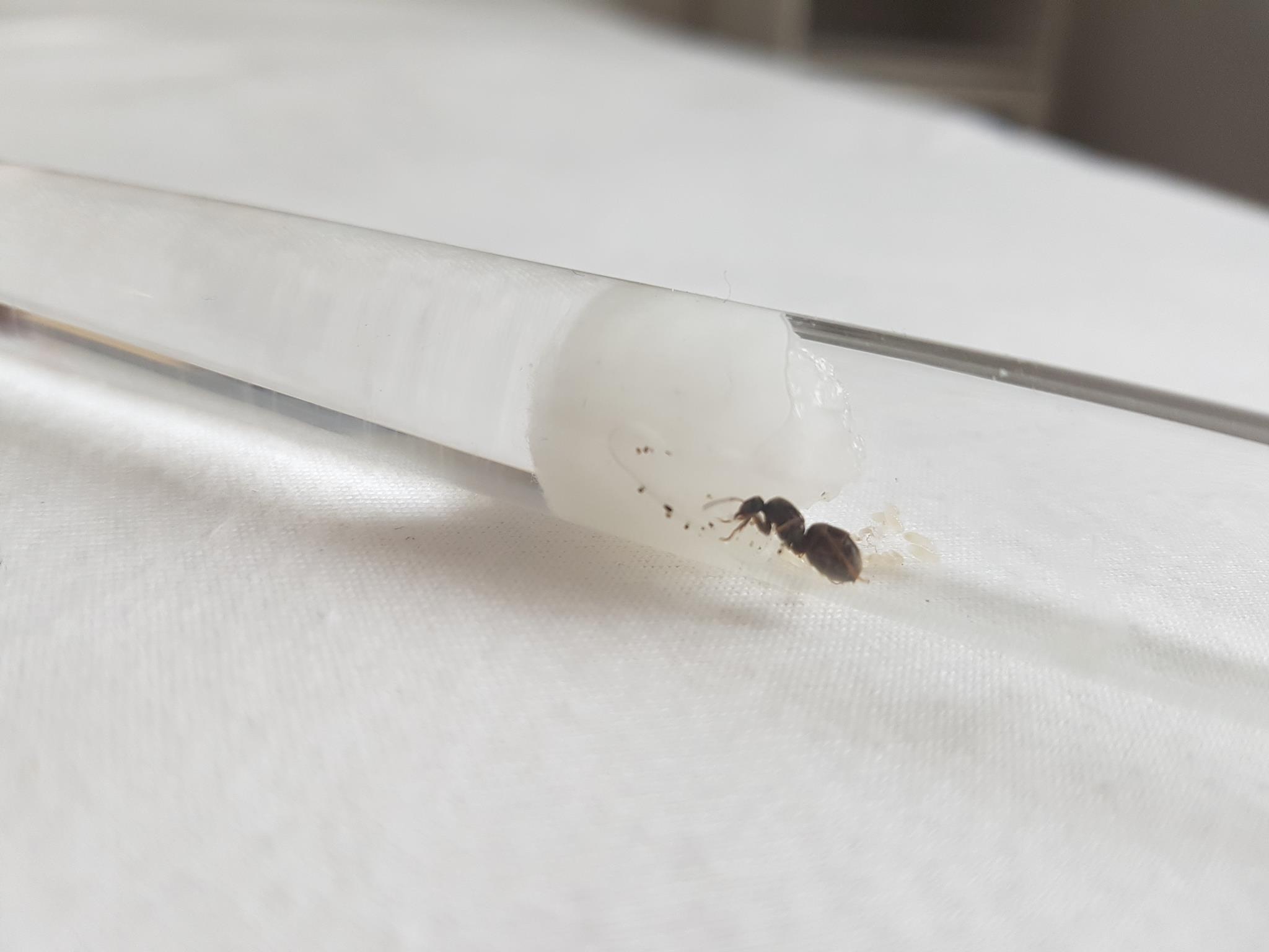 Glas Nr. 3 (ca. 10 mm, schwarz, Verhalten unaufällig, Arbeiterinnen 3-4mm)