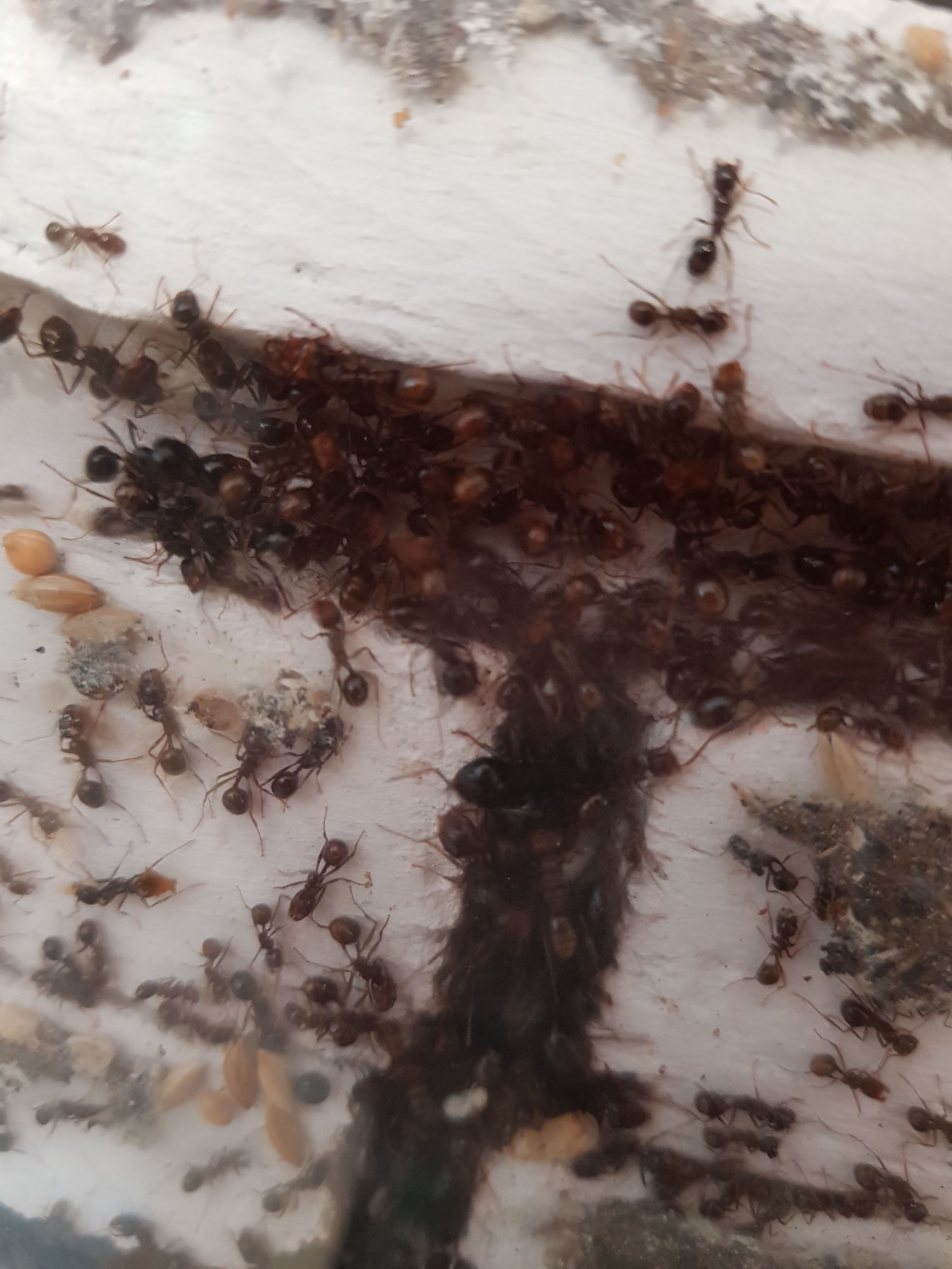 So wie es aussieht, sind es tatsächlich Messor. Die dürften dann wohl auch schon eine gewisse Zeit lang so gahalten worden sein, also als granivore, sonst wäre das Volk wohl kaum so groß geworden.
