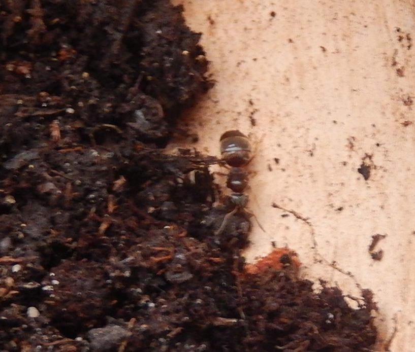 Gerade habe ich doch noch eine weitere Ameise in der Erde gefunden. Es scheint also doch ein Nest in der Gründungsphase gewesen zu sein, dass ich ungewollt zerstört habe. Es ist auch nicht ausgeschlossen, dass dabei weitere Ameisen getötet wurden.