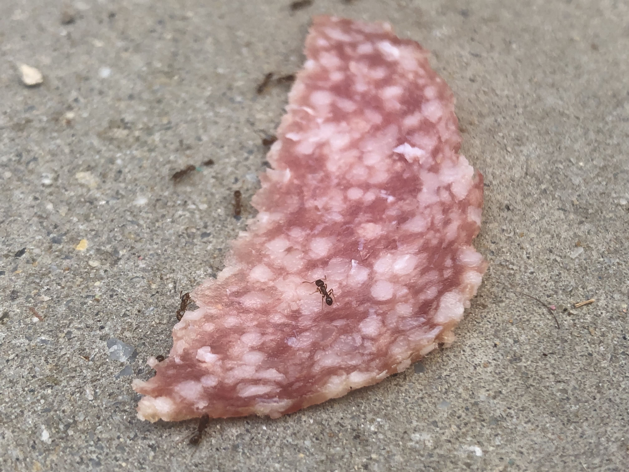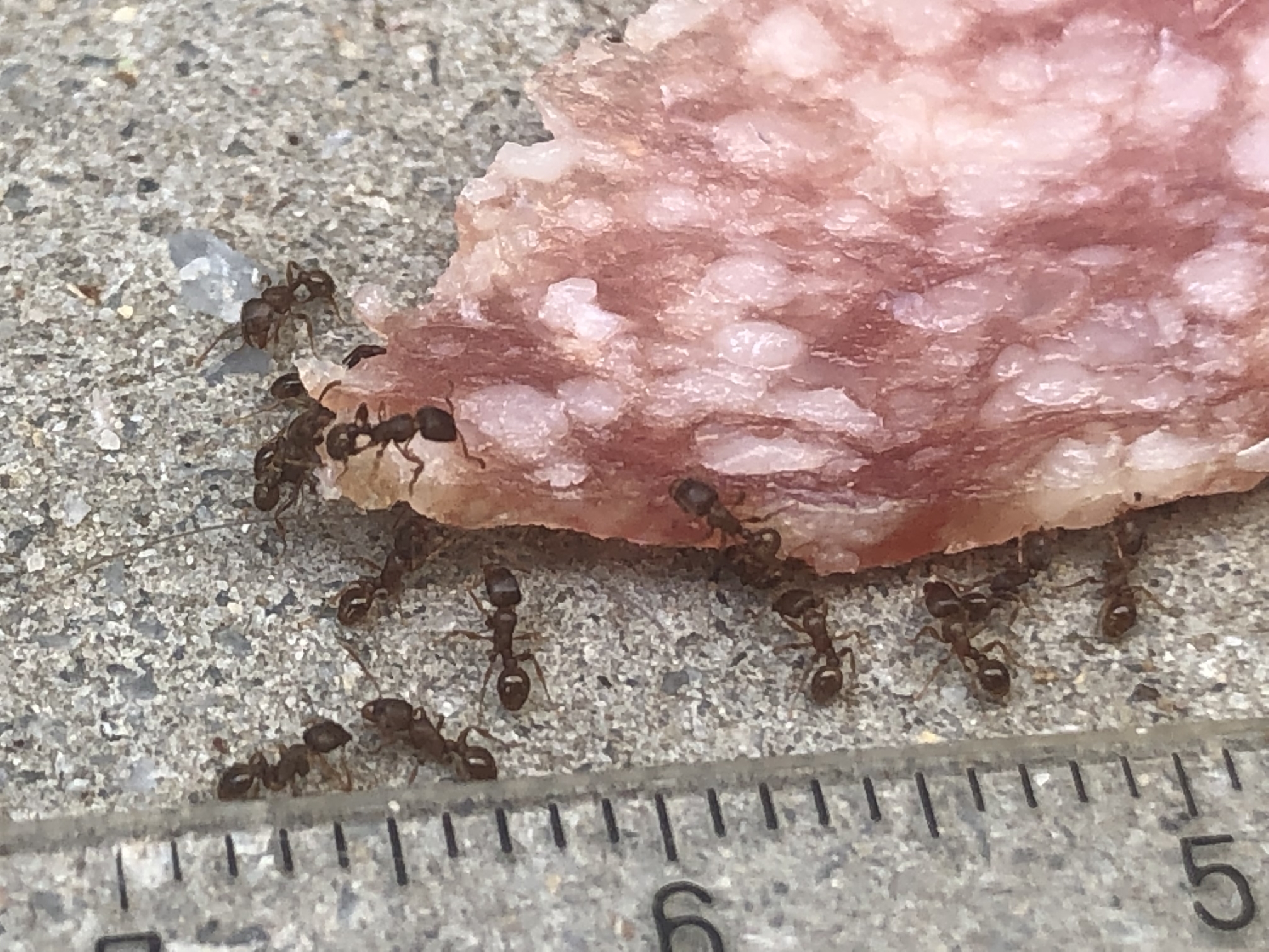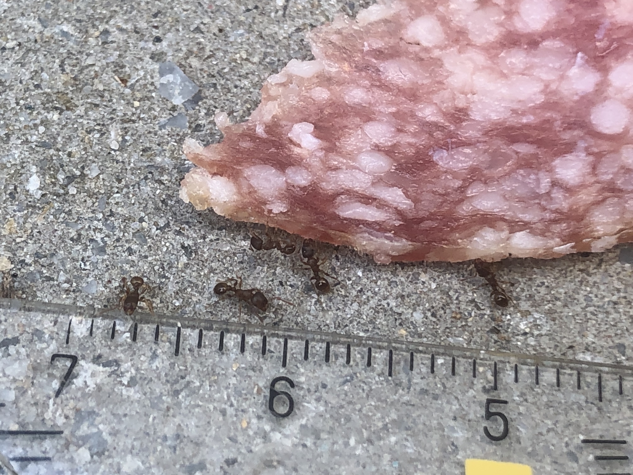Sie lassen sich mit Salami gut locken - Zucker ist ihnen recht egal. Sie bilden für mich keine erkennbaren Straßen sondern bringen ihre Beute einfach an den Rand des Raumes. Sie bewegen sich vermehrt hinter den Leisten. Es treten immer nur wenige auf (15 max. wenn mal was runterfällt - am Balkon nicht mehr als 30). Die meiste Zeit sieht man Einzelexemplare durch die Wohnküche streifen. Nest würde ich unter den Steinplatten am Balkon vermuten (angrenzend zur Wohnküche) - das sie die Beute aber irgendwohin tragen verwirrt mich. Unser Wohnort ist Wien.