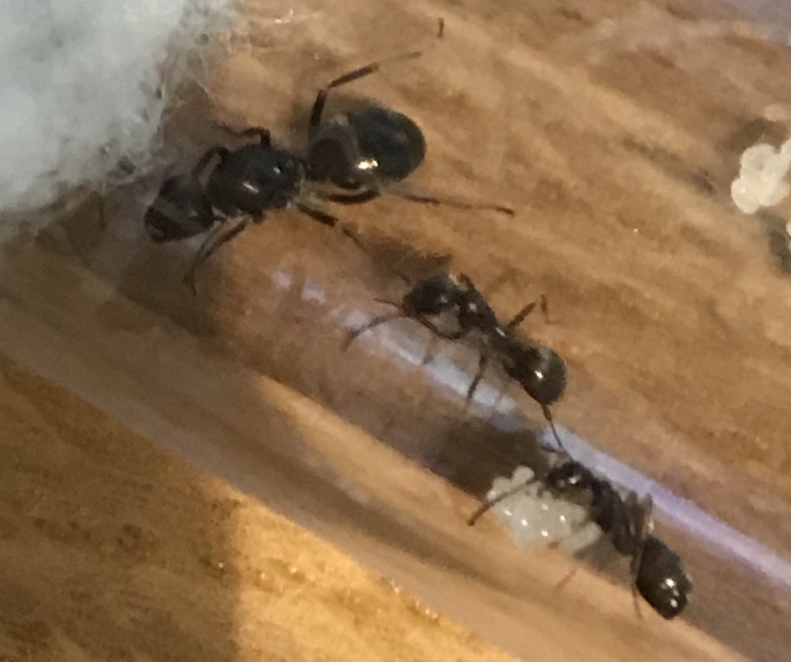 Gyne und 3 Arbeiterinnen (man sieht leider auf dem Foto nur 2) und ein paar wenige frisch gelegte Eier. Diese hab ich dann alle eingesammelt und Sie sitzen nun in einem Reagenzglas. Mein Frage: um welche Art handelt es sich bzw gibt es irgendwelche Sachen auf die ich achten muss?