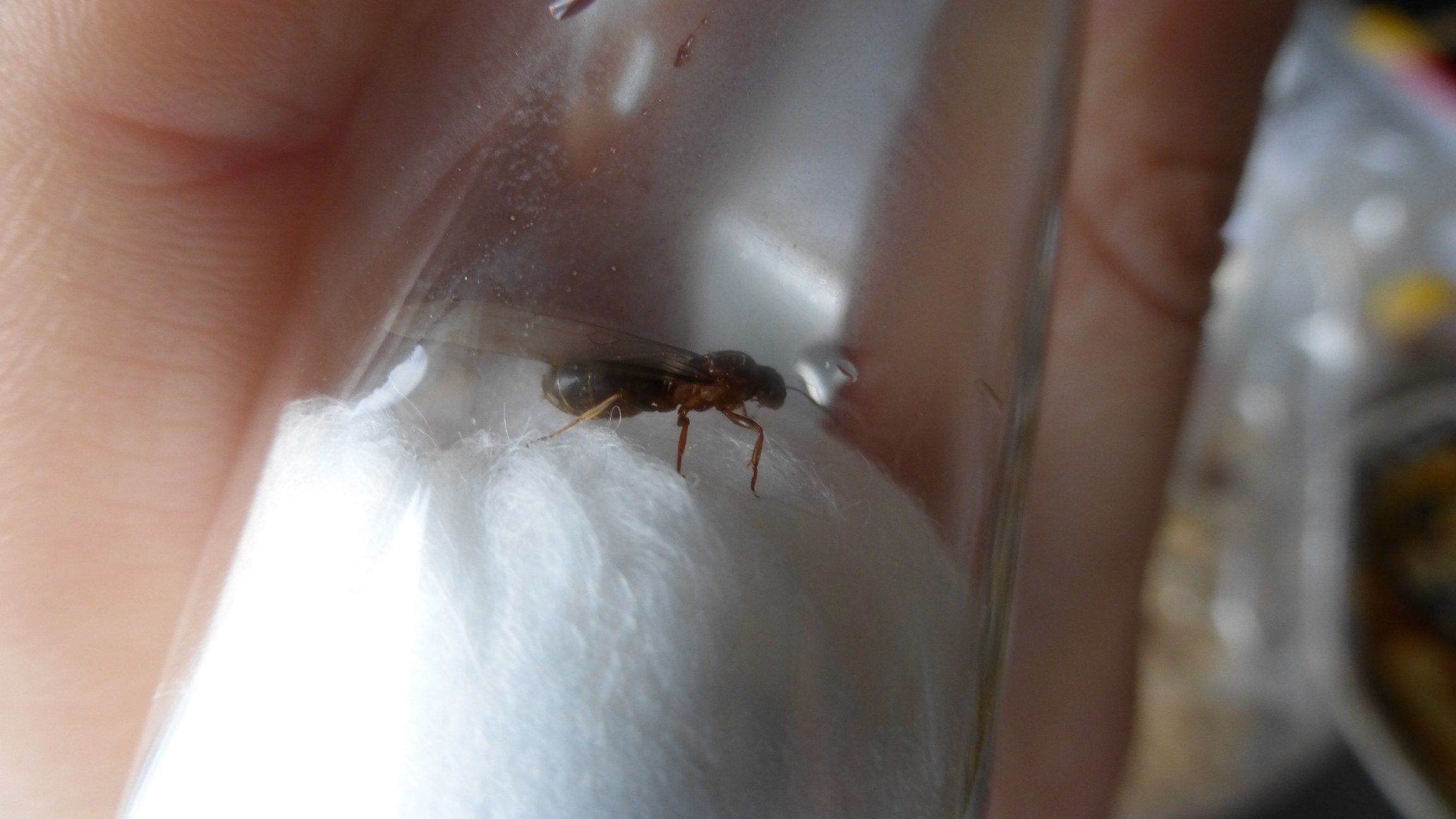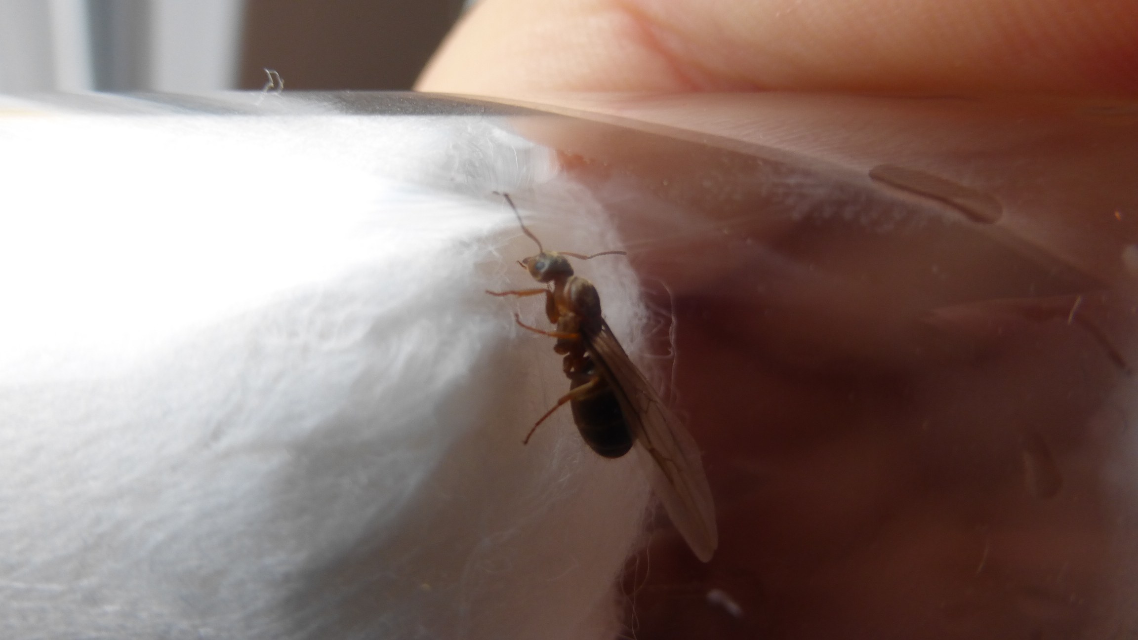 Ja, das war auch meine Vermutung. Mal sehen ob sie sich gepaart hat - noch hat sie ihre Flügel und sitzt auf dem trockenen Frontstopfen, anderseits verhält sie sich auch sehr ruhig was ja eher typisch für gründende Königinnen wäre.