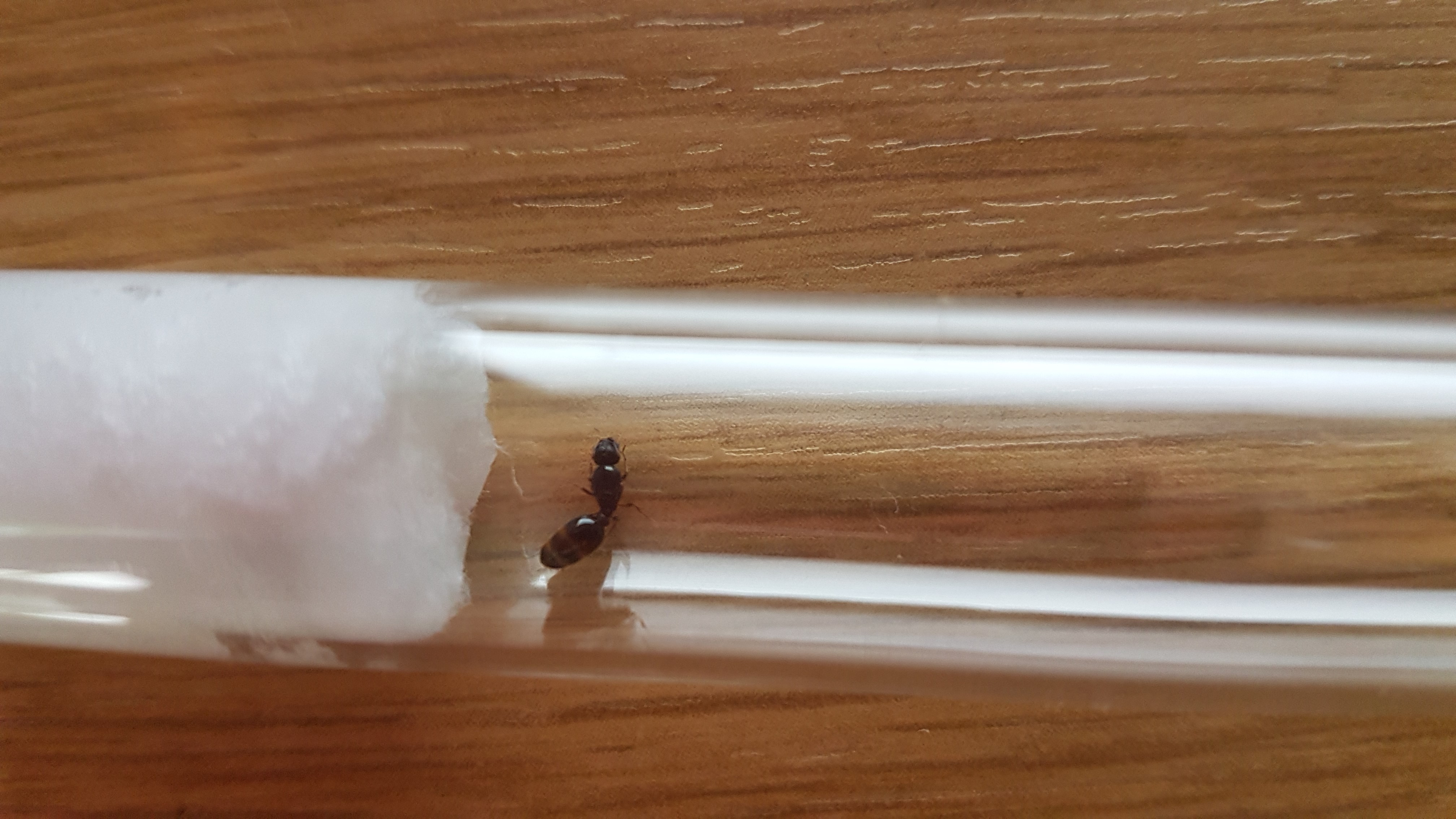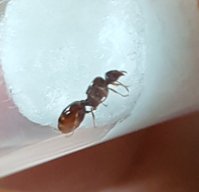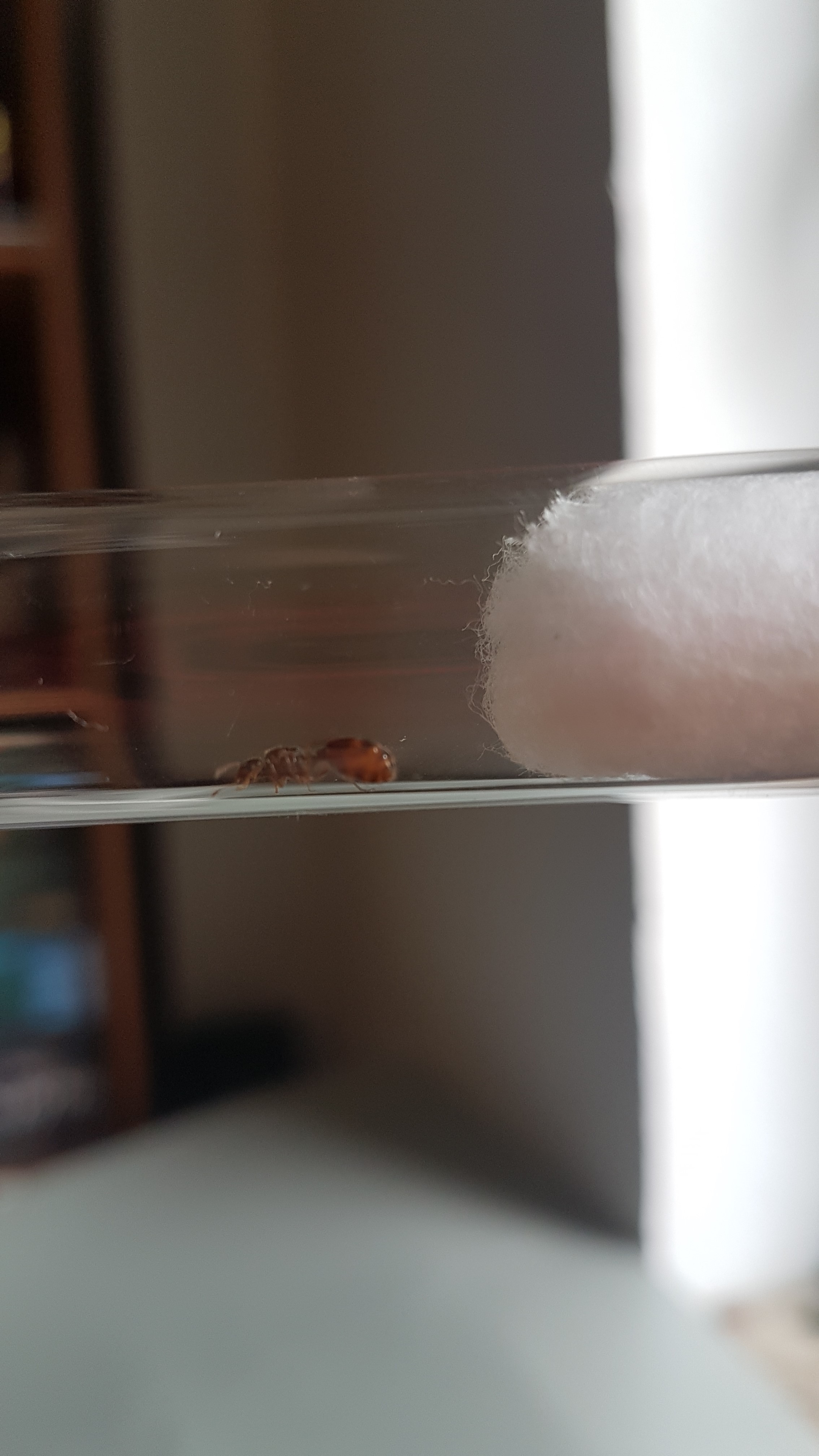 Ich bin mir aber nicht sicher, ob es bei Walpurga nicht auch Solenopsis fugax sein könnte. Es lassen sich jedenfalls keine Propodealdornen erkennen wie sie Tetramorium hat, was allerdings bei der BildqualitÀt auch nicht wirklich festzustellen ist. Wenn ich davon ausgehen, dass die ReagenzglÀser in denen