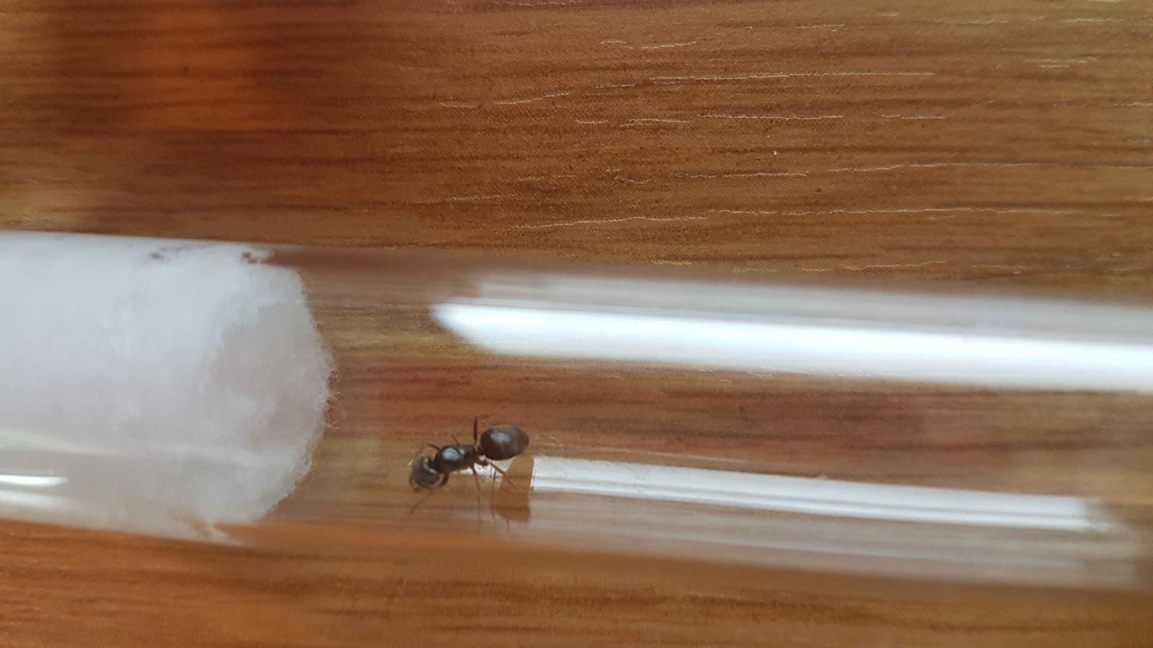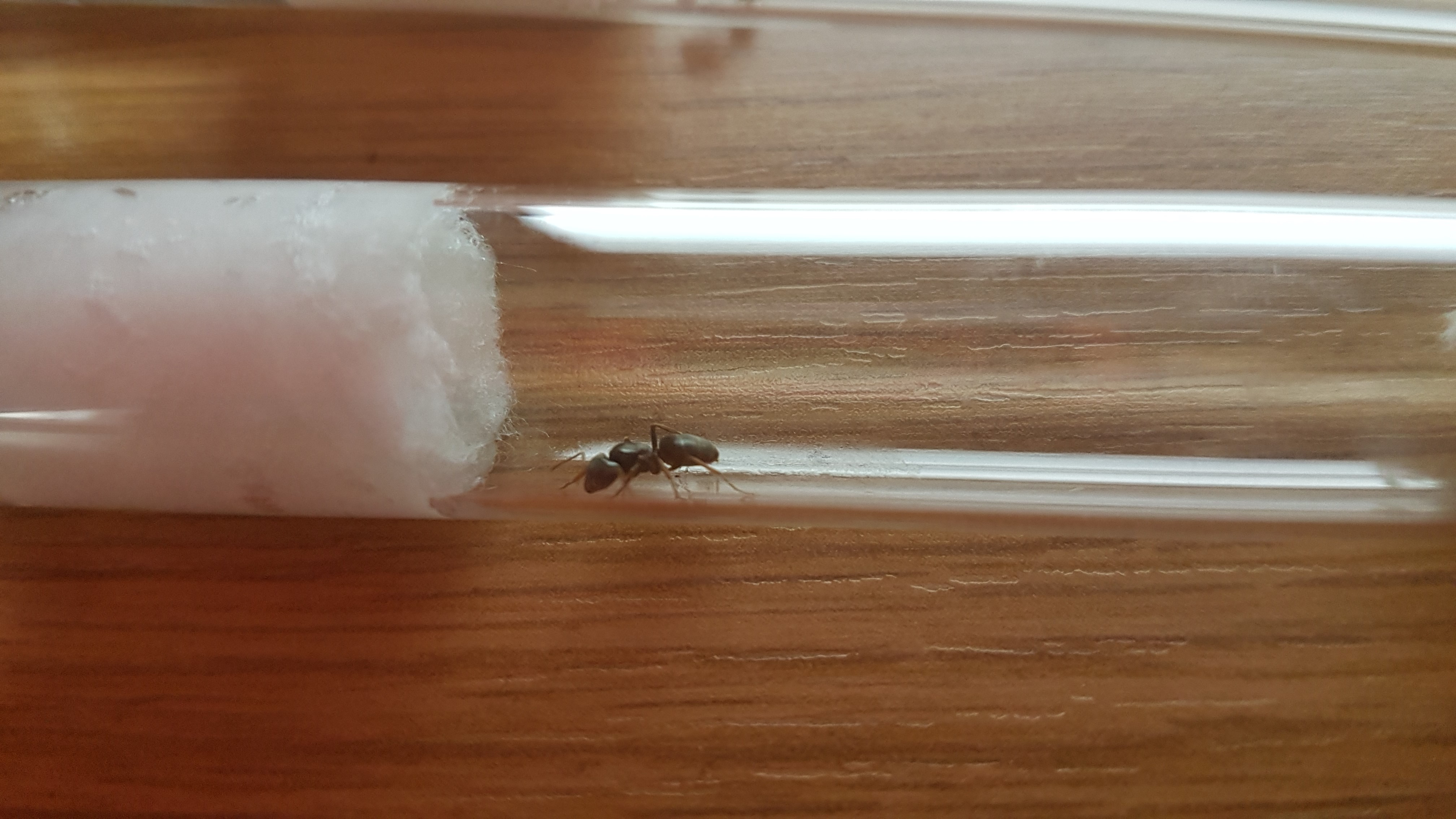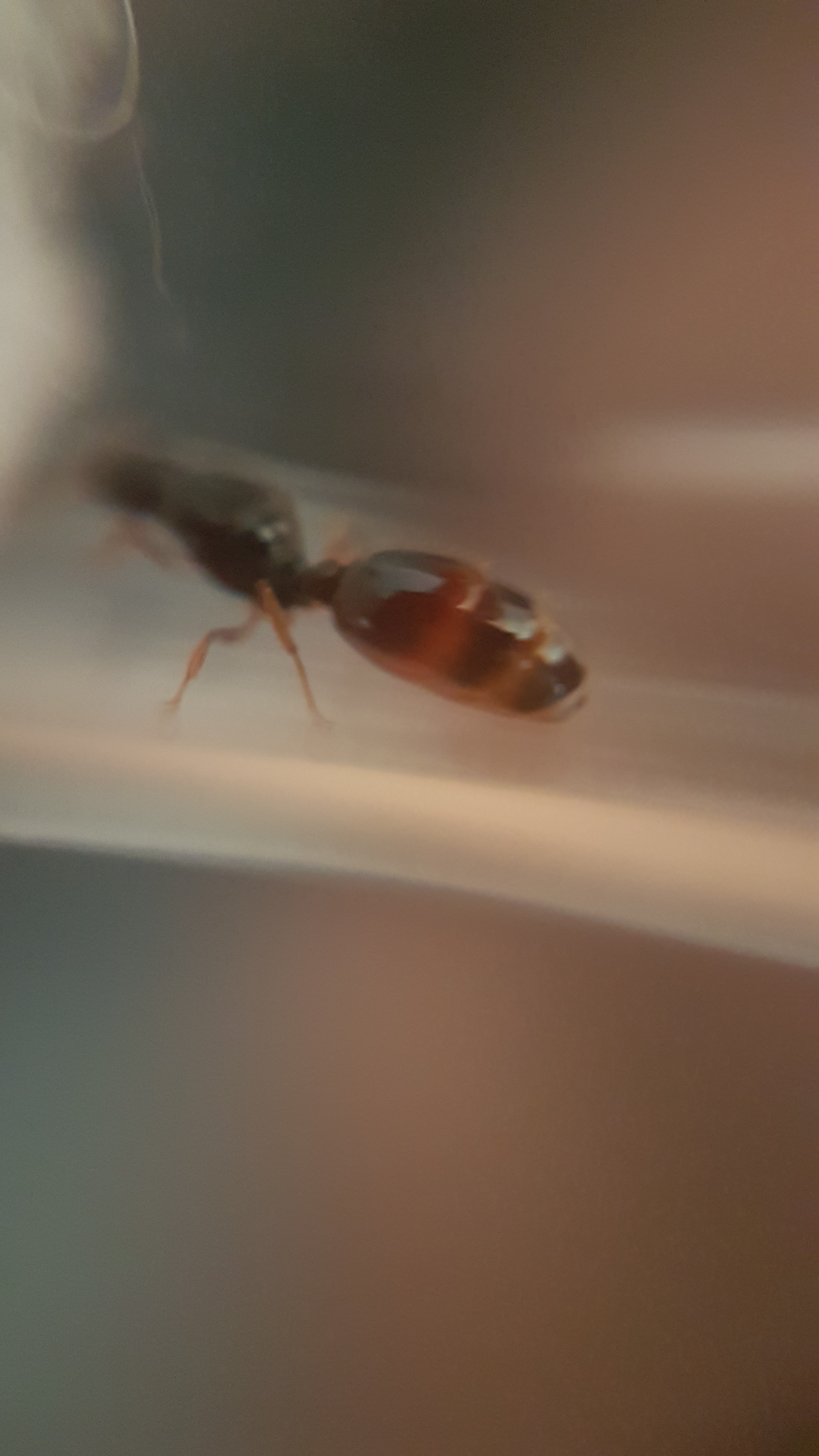 Ich bin mir aber nicht sicher, ob es bei Walpurga nicht auch Solenopsis fugax sein könnte. Es lassen sich jedenfalls keine Propodealdornen erkennen wie sie Tetramorium hat, was allerdings bei der BildqualitÀt auch nicht wirklich festzustellen ist. Wenn ich davon ausgehen, dass die ReagenzglÀser in denen
