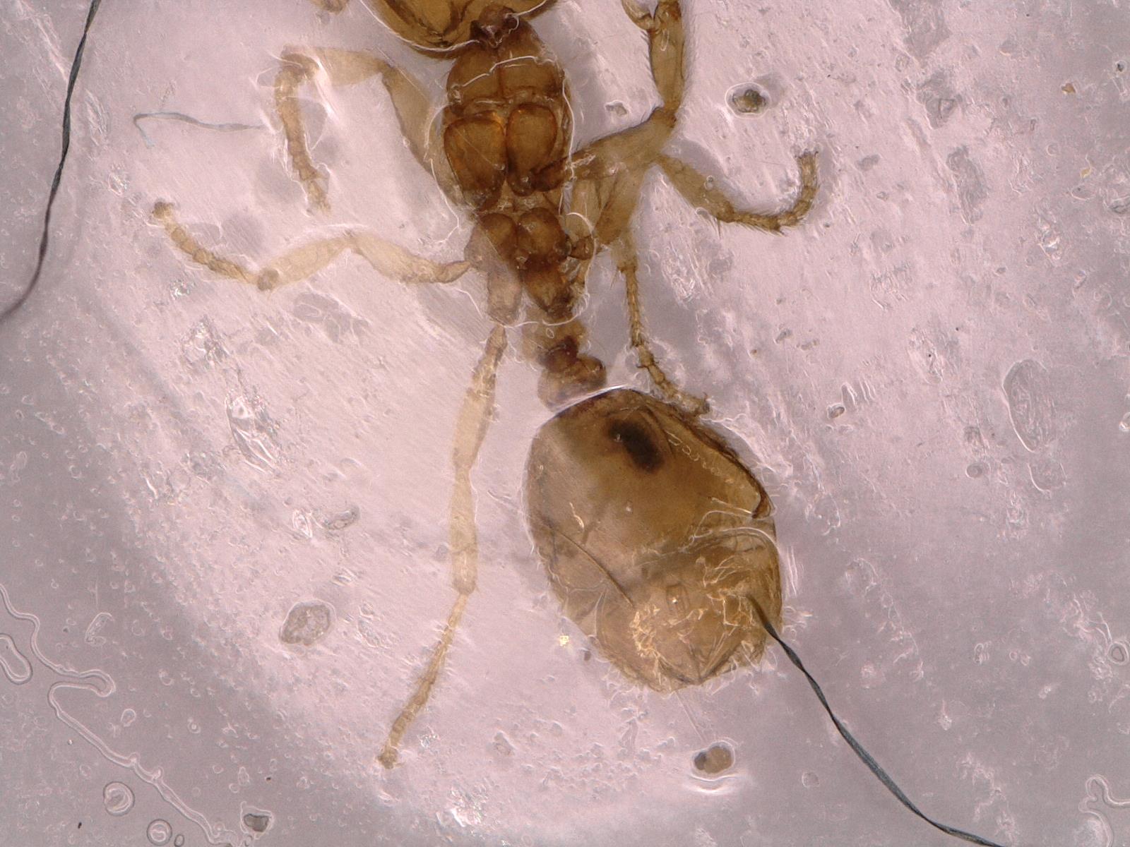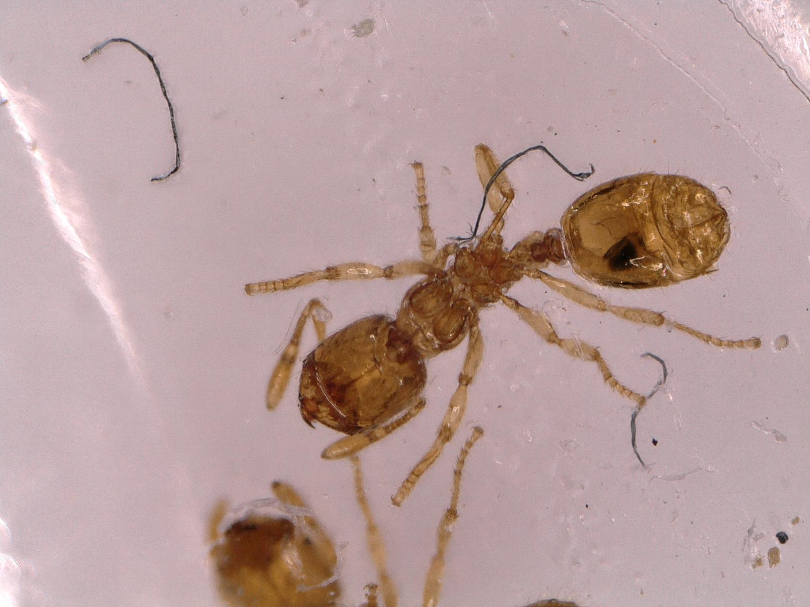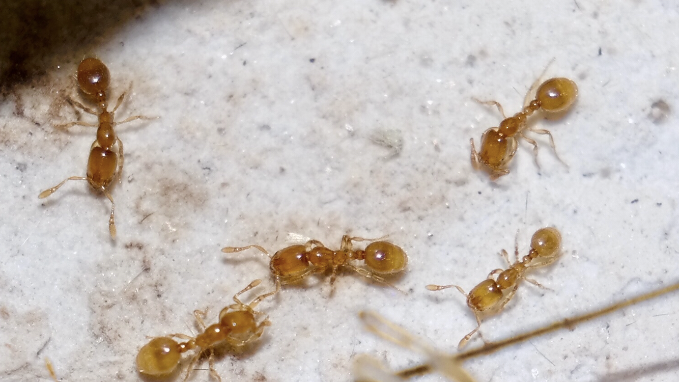 Ich interessiere mich schon länger für Insekten und auch für Ameisen und wollte mir eigentlich schon länger eine Kolonie anschaffen; geplant war ursprünglich mit Lasius niger zu starten. Kürzlich habe ich aber im Garten eine Trittplatte im Rasen etwas tiefer gesetzt und darunter ein Ameisennest (sehr kleine Art, ca. 2 mm, gelb/orange mit schwarzen, geflügelten Geschlechtstieren) gefunden, das ich in ein altes, kleines Aquarium aus Glas geschaufelt habe, da ich doch etwas Mitleid mit den Tierchen hatte.